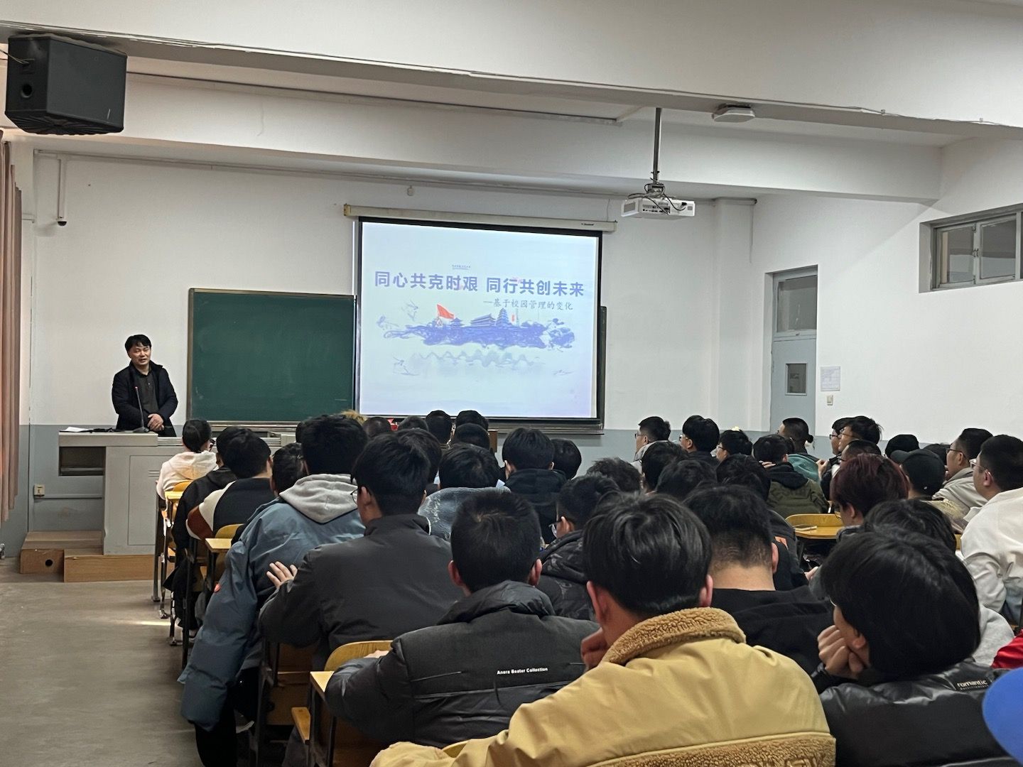 校党委副书记、校长白培康为经济与管理学院学生讲授“开学第一课”,他从新冠病毒特点出发分析了近几年国际疫情形势以及疫情对中国的冲击和影响,结合我国疫情防控纪实为同学们讲解了从“乙类甲管”到“乙类乙管”调整的科学依据,并结合万象城官网从严从细落实疫情防控的具体举措讲授伟大抗疫精神的丰富内涵,最后对同学们提出“感悟伟大成就 汲取精神力量、担当时代重任 矢志拼搏奋斗、增长知识本领 勇于突破创新”的三方面的要求和期待。