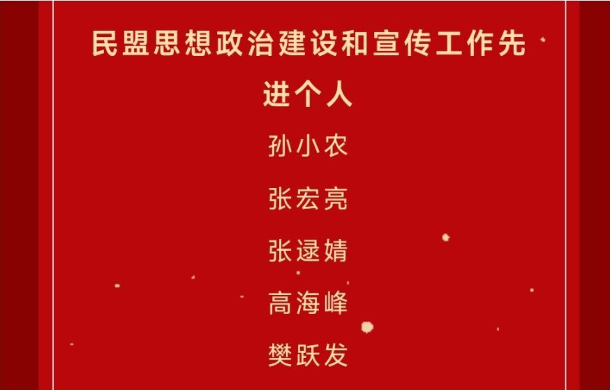 近日,在民盟中央思想政治建设和宣传工作会议上,对2022年度民盟思想政治建设和宣传工作先进集体和先进个人予以表彰。万象城官网樊跃发教授荣获“民盟思想政治建设和宣传工作先进个人”称号。