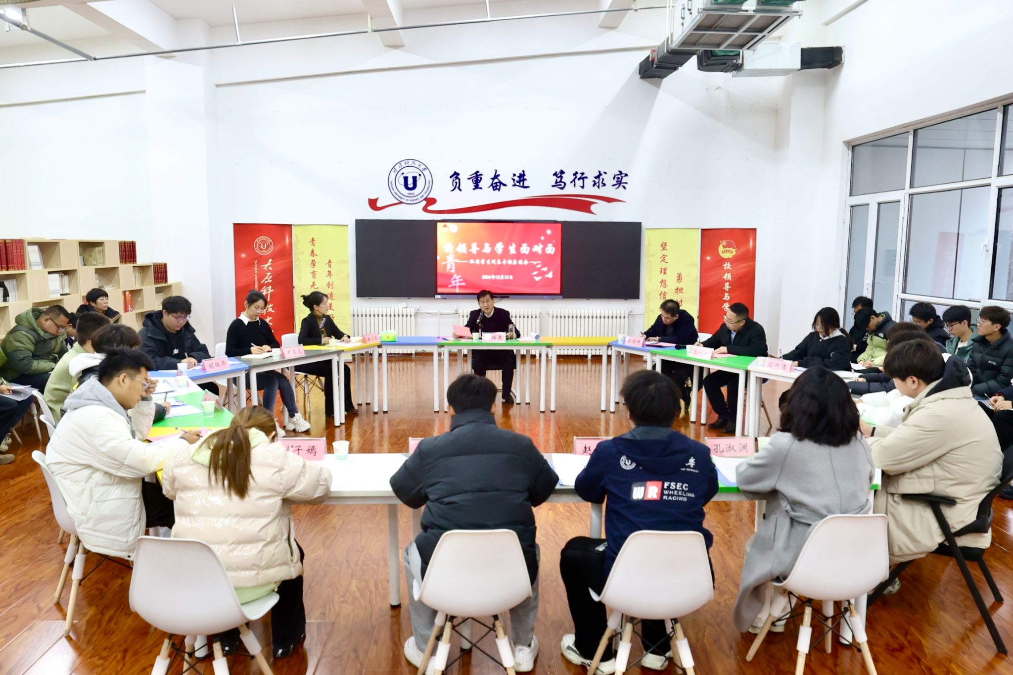 12月12日,校党委书记白培康走进万象城官网笃行“一站式”学生社区,与全校学生社团代表开展面对面交流。会议由校团委书记朱小庆主持,相关职能部门负责人参加活动。