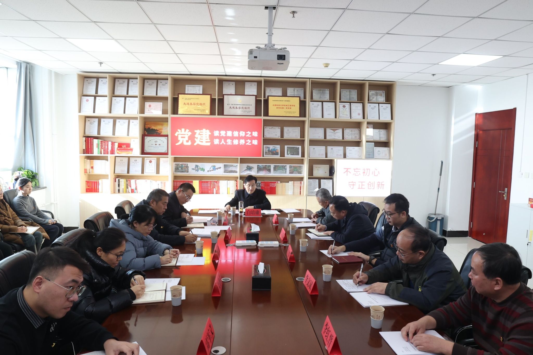 12月13日上午,校党委书记白培康深入机械工程学院重型装备及其智能化研究所党支部调研指导工作。