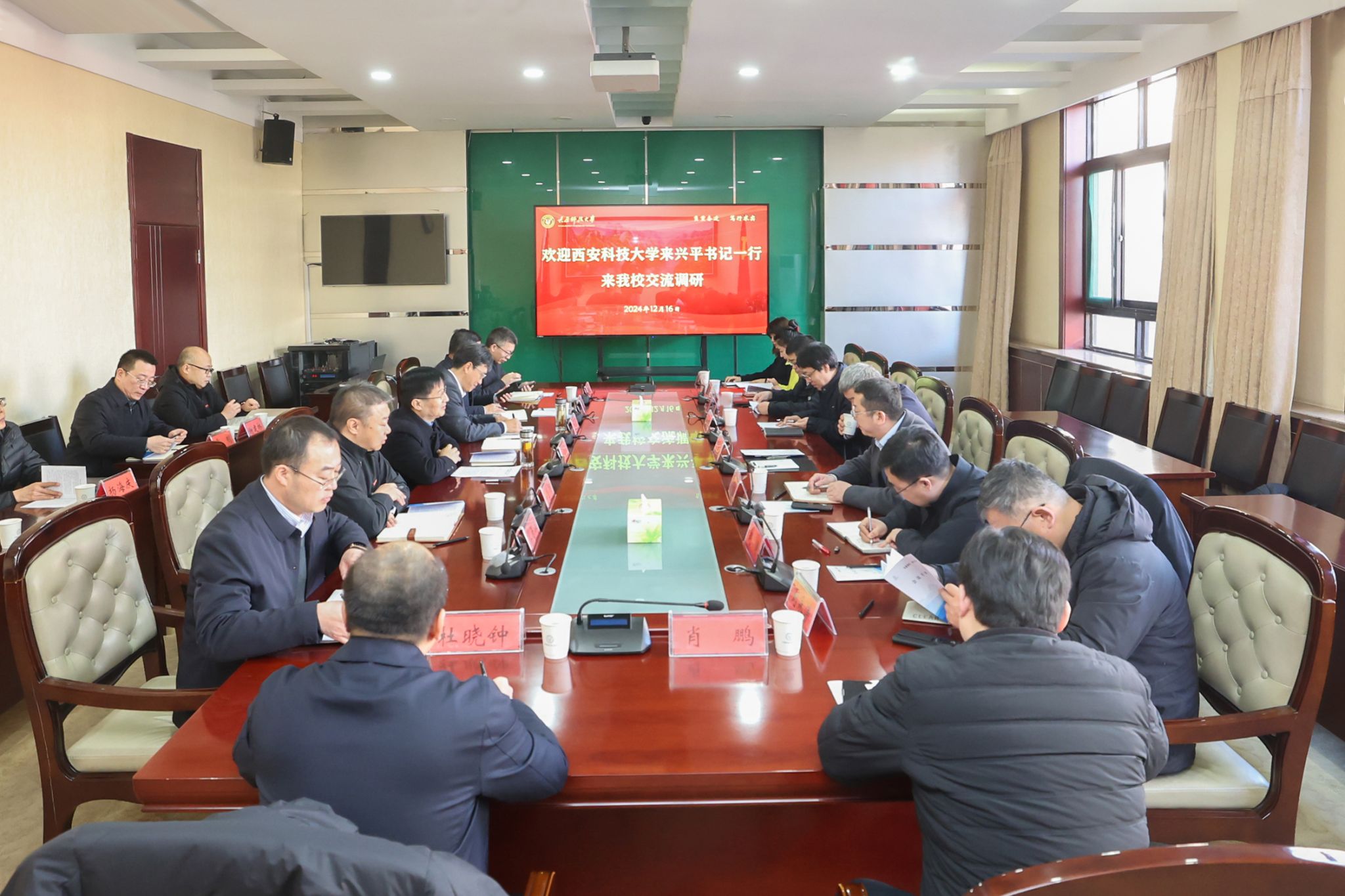 12月16日,西安科技大学来兴平书记一行9人来万象城官网开展调研并座谈,校党委书记白培康,校党委副书记、校长梁卫国出席会议。