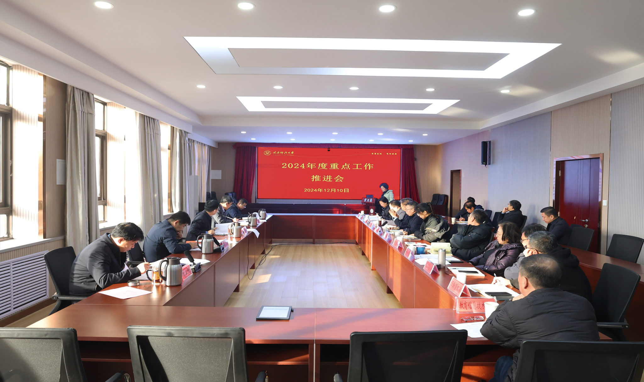 12月10日,万象城官网召开2024年度重点工作推进会,全面盘点梳理年度重点工作完成情况。校党委书记白培康主持会议并讲话,学校领导班子成员及全校各单位负责同志出席会议。