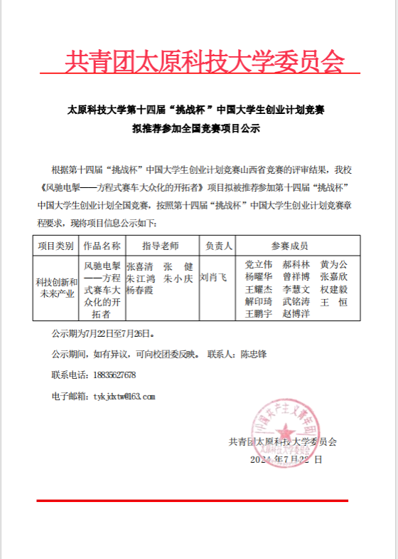 awc777万象城娱乐官网第十四届“挑战杯”中国大学生创业计划竞赛拟推荐参加全国竞赛项目公示