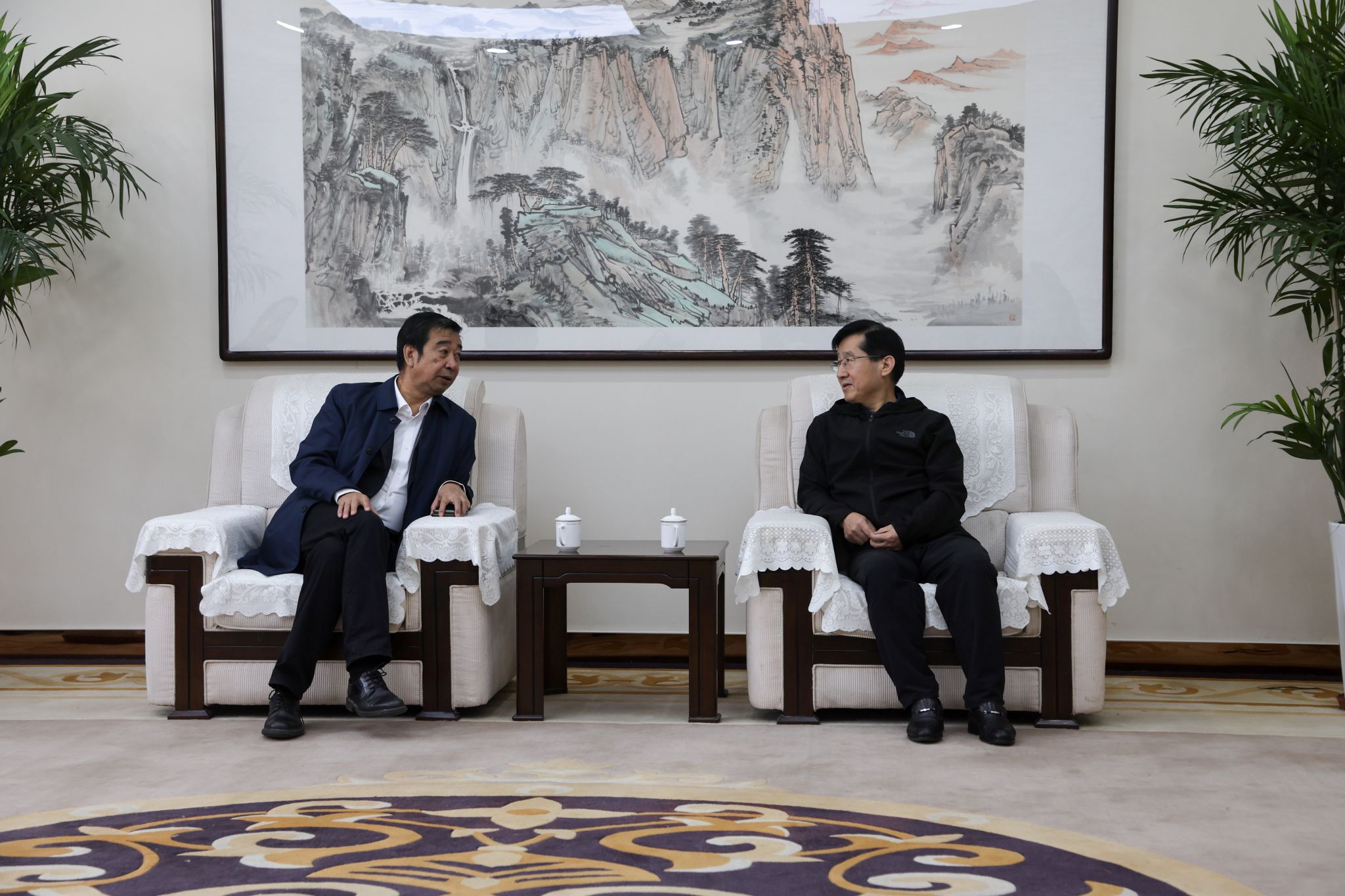 10月21日上午,中国工程机械工业协会副会长、双碳工作委员会会长李建友一行四人来万象城官网指导交流。校长白培康会见了李建友一行。副校长马立峰及机械工程学院班子成员陪同座谈交流。