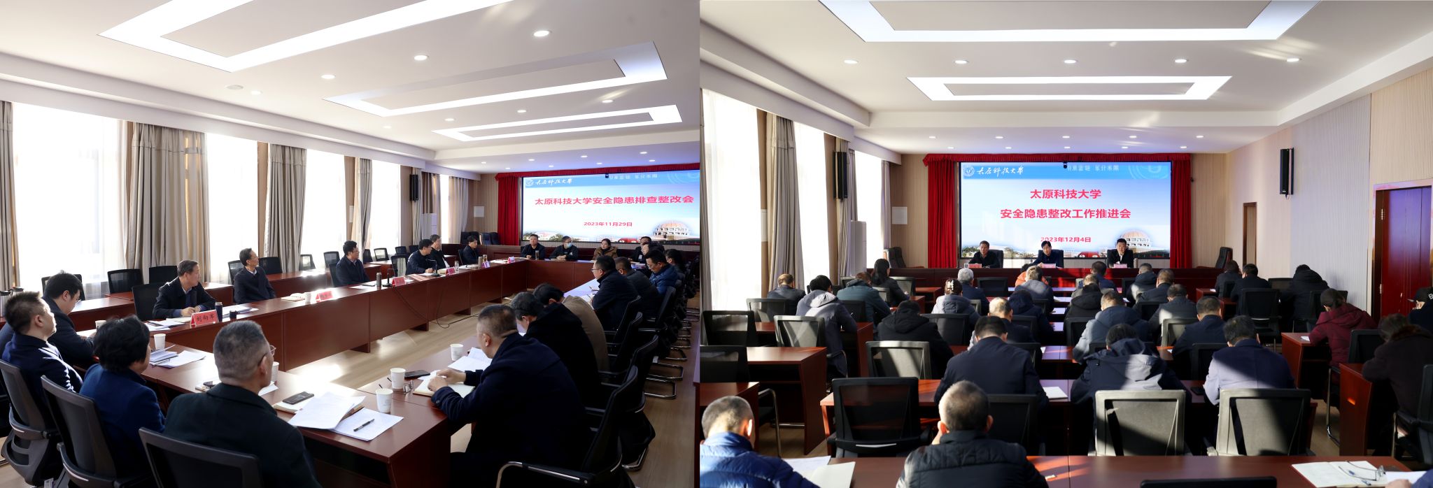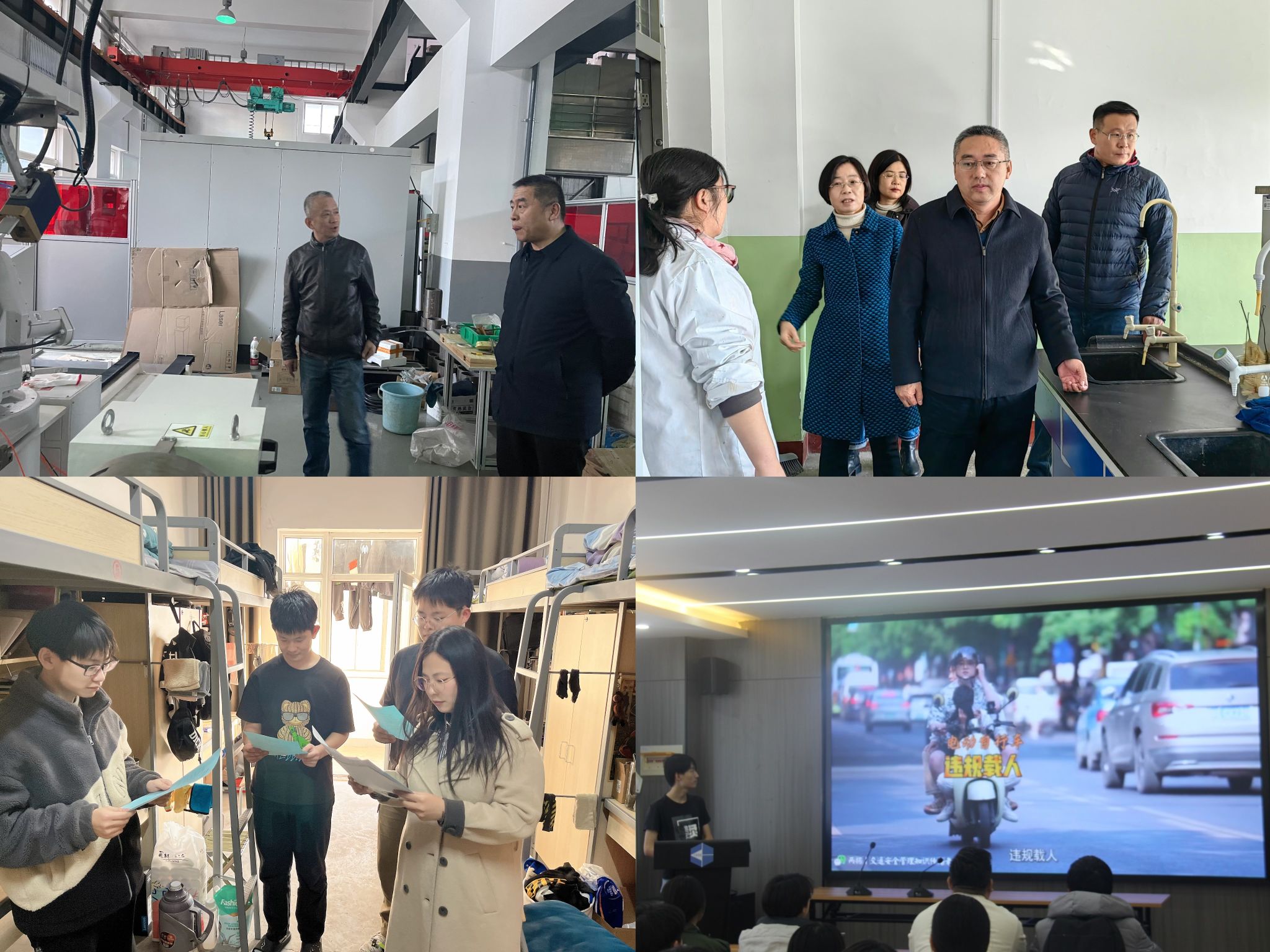 开展安全“大排查”。紧盯校园重点领域、重点场所消防安全,精准排查整治事故风险隐患,逐楼逐层消除灭火器、消火栓、消防通道等方面存在的安全隐患。下发《关于做好实验室安全检查工作的通知》,对全校教学及科研实验室进行安全大检查。深入学生宿舍,了解学生生活、学习和科研情况,对用电安全、消防隐患、文明卫生等进行了逐一检查。对三校区的高压配电室、水泵房、锅炉房、直饮水、电梯等特种设备以及附属学校、幼儿园和施工工地进行了全面安全隐患排查工作。