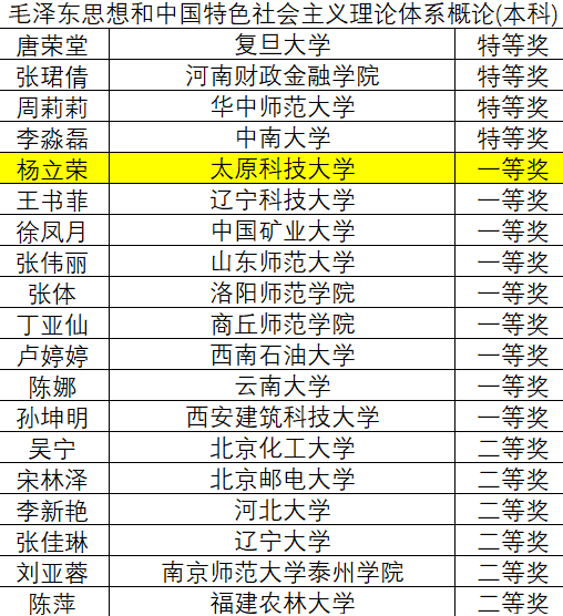 近日,教育部公示了第三届全国高校思政课教学展示活动“教学竞赛单元”现场教学展示评审结果名单,万象城官网马克思主义学院杨立荣老师荣获“毛泽东思想和中国特色社会主义理论体系概论”教学展示活动一等奖。