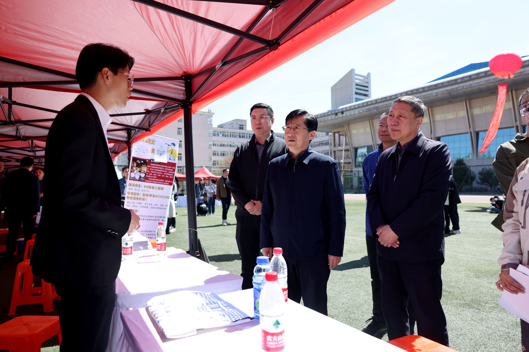 校党委副书记、校长白培康,校党委常委、副校长刘向军,省教育厅学生处处长武振杰、省教育发展服务中心主任王小军来到招聘会现场与用人单位、应聘学生交流,详细调研企业岗位需求、了解学生求职情况。各学院相关负责人、毕业班辅导员来到招聘会现场积极与用人单位沟通交流。