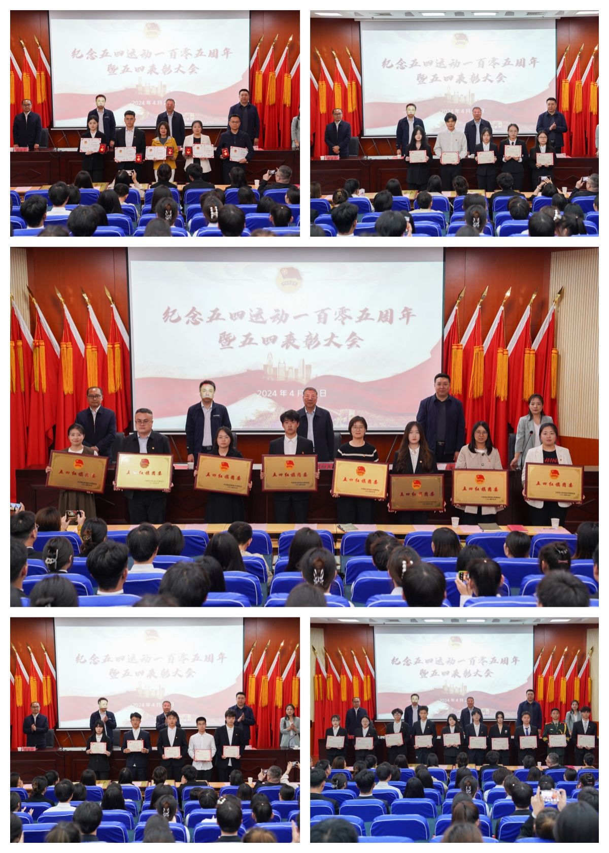 大会对获得2023-2024学年“五四红旗团委”“科大青年五四奖章”“优秀共青团干部”“年度优秀大学生”“五四红旗团支部”“优秀共青团学生干部”“优秀共青团员”“年度优秀青年教师”“十佳社团”称号的集体和个人进行表彰,并举行了新发展团员入团宣誓仪式。