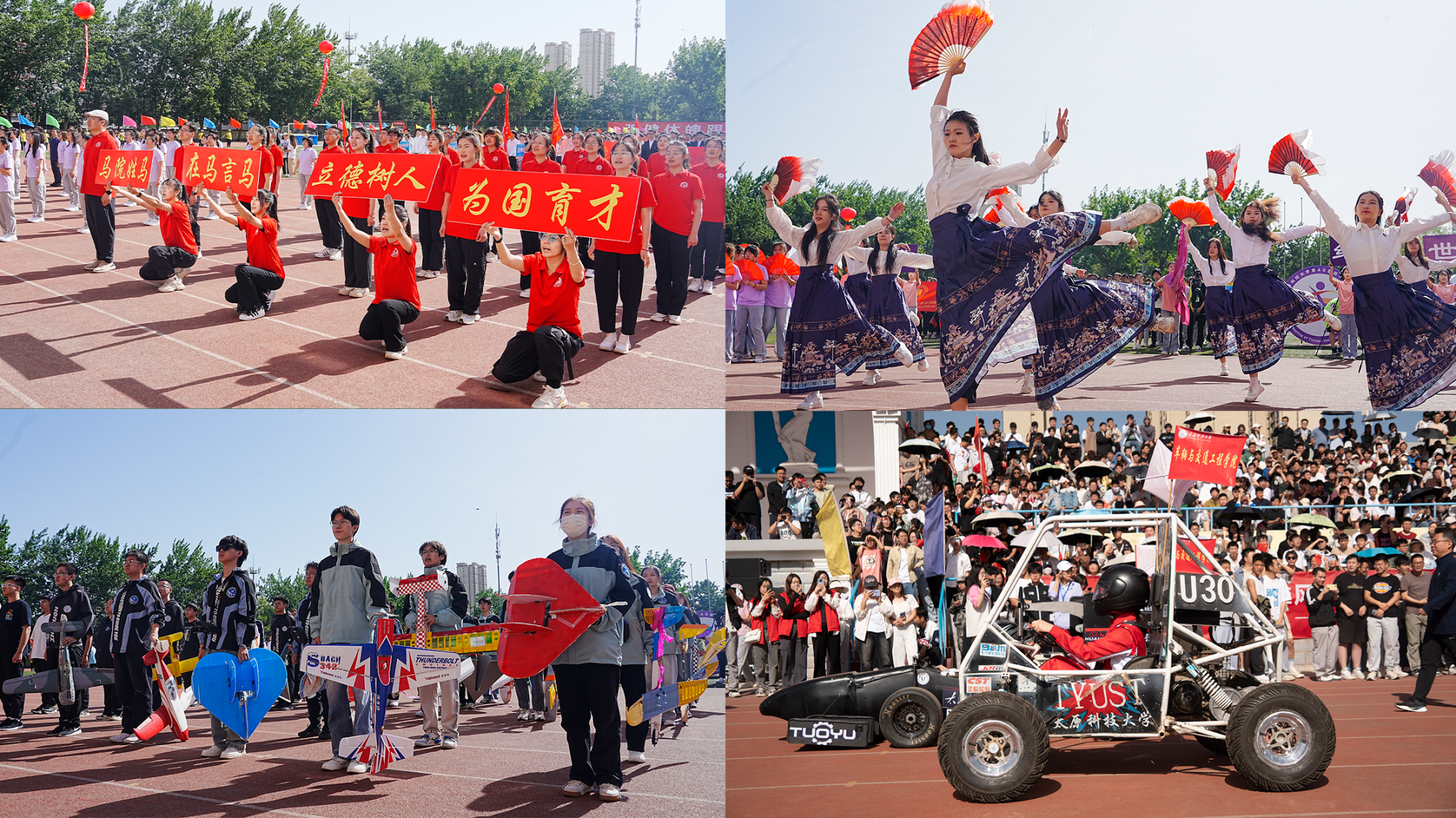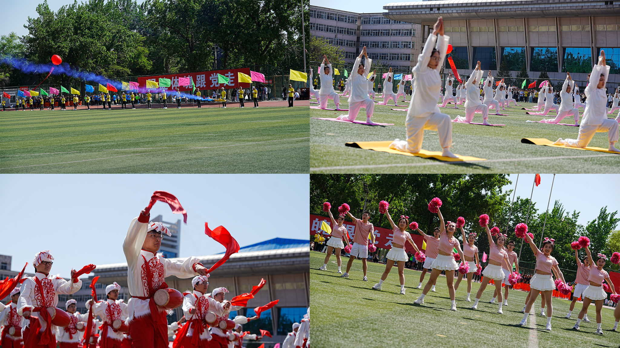 开幕式表演上,NewMaker智能实训基地航模队为师生送上了飞行表演,飞机在空中翱翔、翻滚、盘旋,现场不时发出阵阵惊叹和掌声;舞龙舞狮表演栩栩如生、气韵十足,同学们身着鲜艳的演出服,在激昂的鼓点声中尽情舞动,展现了中华传统体育项目的独特魅力;由教职工带来的健身瑜伽表演《游牧时光》紧随其后,娴熟的动作和优美的舞姿,将刚与柔、力与美淋漓尽致地呈现;机械工程学院腰鼓表演鼓点铿锵,豪迈的鼓声和挥舞的红绸,散发着青春的活力;活力四射的啦啦操表演将气氛推向高潮,同学们动作整齐划一,举手投足都是满满的自信,赢得了一片片喝彩声。