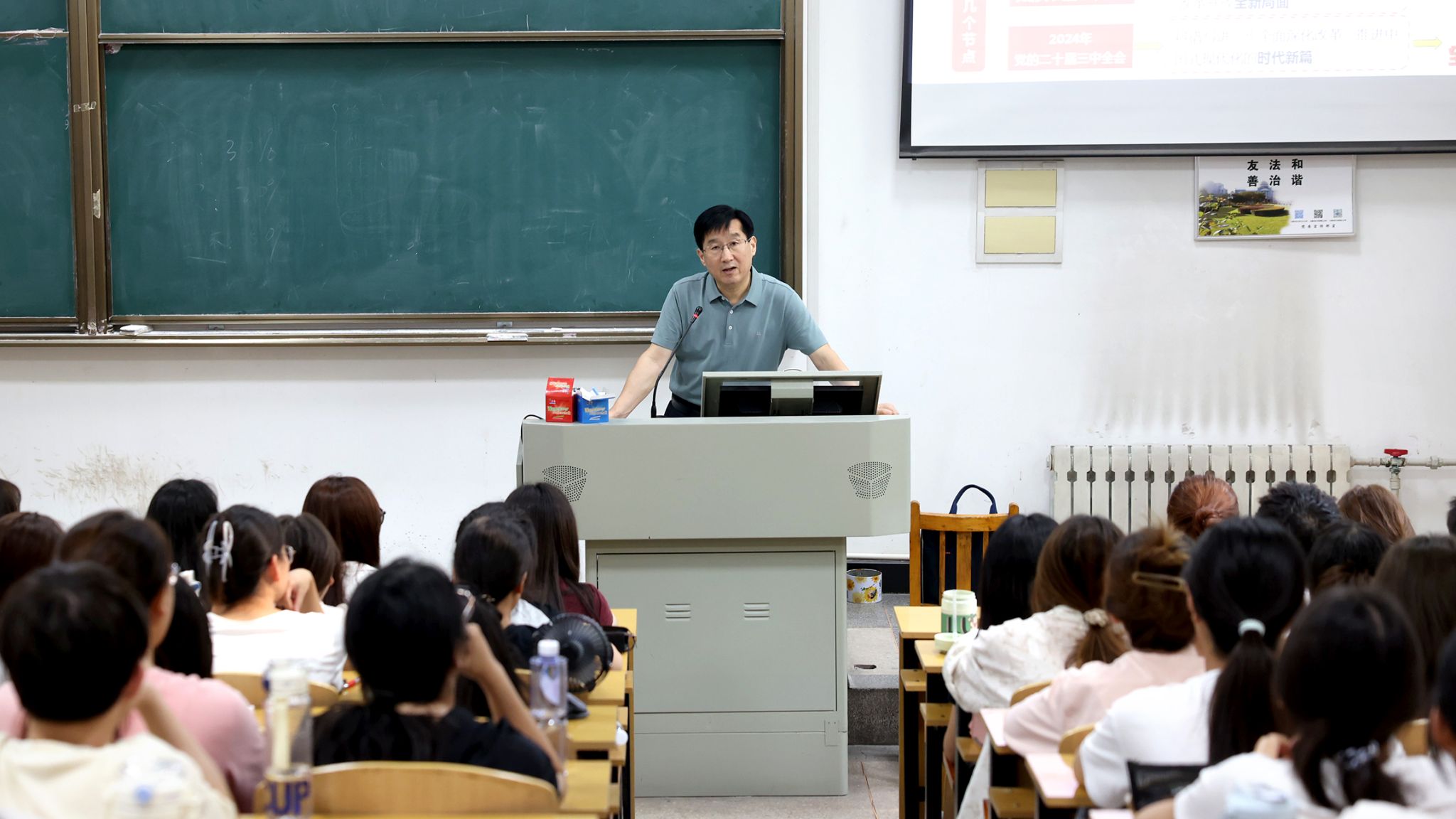 他指出,党的二十届三中全会是在以中国式现代化全面推进强国建设、民族复兴伟业的关键时期召开的一次十分重要的会议,是新的历史起点上进一步全面深化改革、推进中国式现代化的总动员、总部署,全校师生必须把学习好、宣传好、贯彻好党的二十届三中全会精神当作当前和今后一段时期的重大政治任务。
