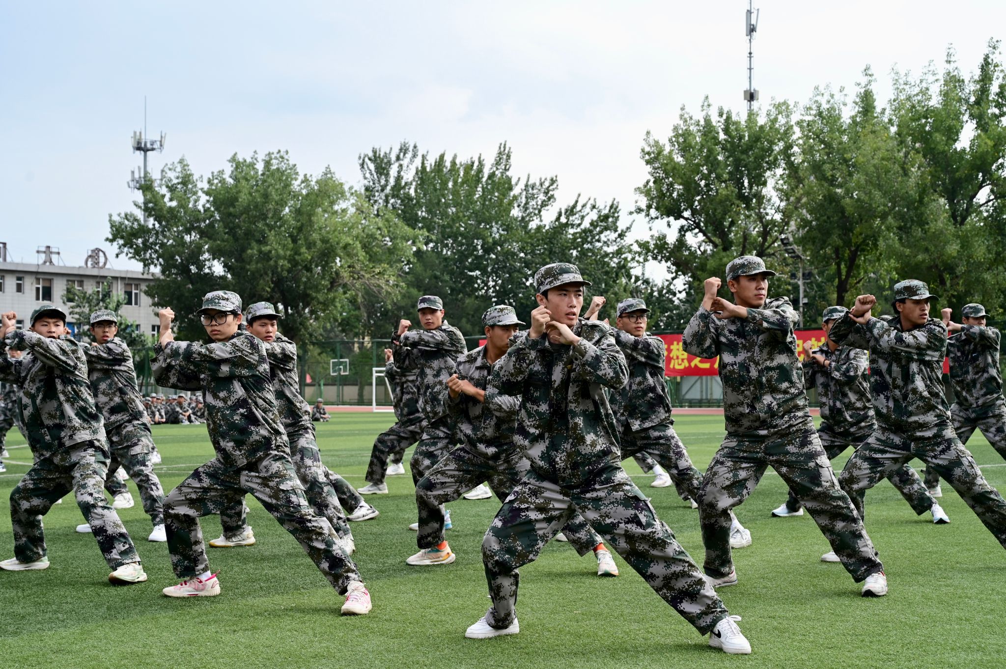 大会在雄壮激昂的国歌旋律中庄严开启。参训学生个个精神饱满、士气高昂,依次进行了分列式、队列和擒敌拳等训练成果展示,用规范动作和坚强意志彰显科大学子朝气蓬勃、锐意进取的精神风貌,为大学第一课交上满分答卷。