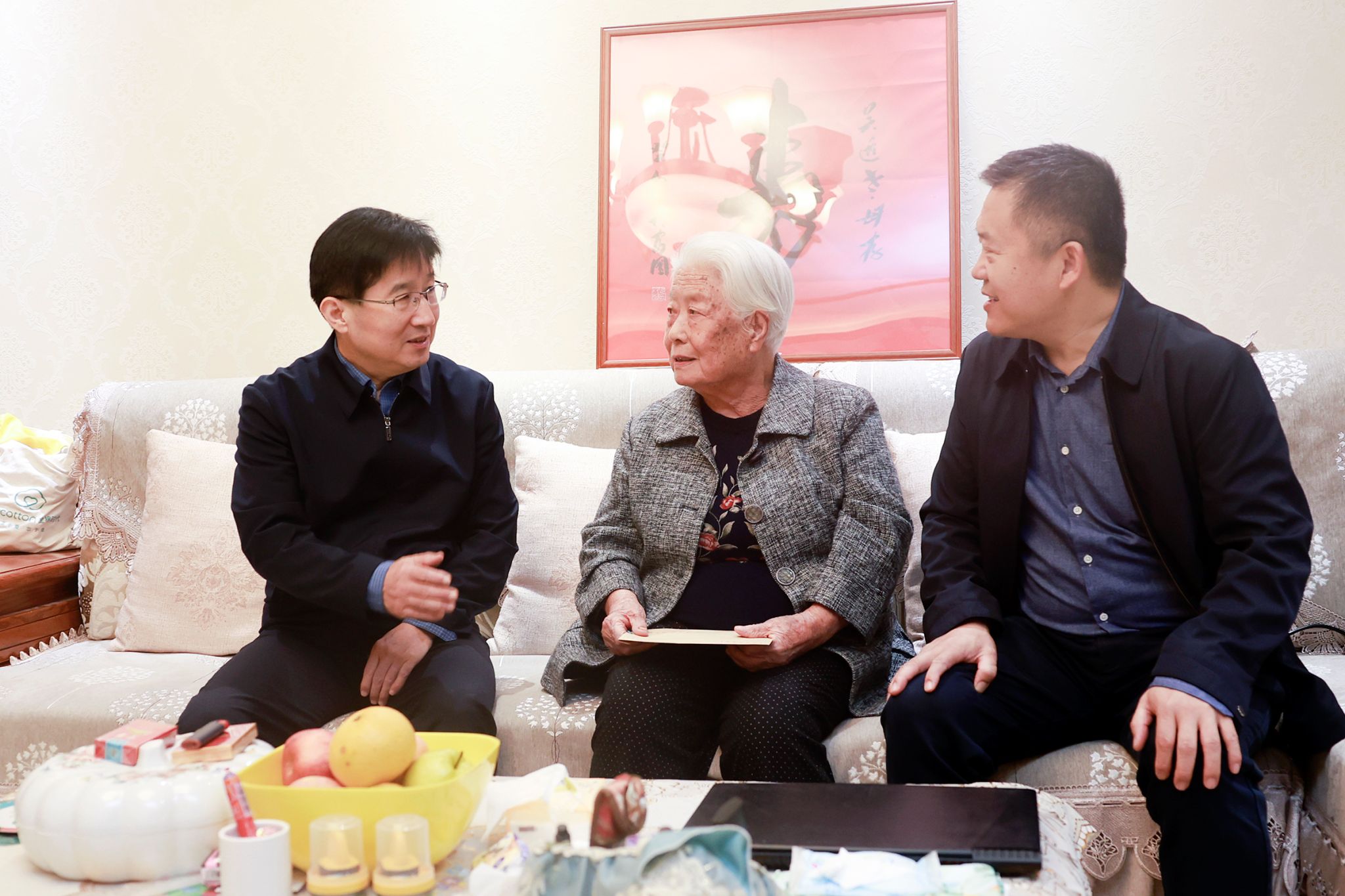 在郑秀芳、陈志平、成秀明等老党员家中,校领导与他们促膝交谈,追忆峥嵘岁月,回顾光辉历程,畅叙美好发展愿景。领导们仔细询问了解他们的身体生活情况,向他们介绍了学校刚刚完成的本科教学评估工作,年度正在实施的“七大工程”进展,认真听取老同志们对学校“十四五”事业发展规划和加快建成高水平研究应用型大学奋斗目标的意见和建议,同时叮嘱老同志们保重身体、健康生活,希望他们一如既往地关心、关注学校建设,为学校的发展建言献策。校领导还要求离退休工作部切实做好服务和保障工作,悉心为老同志们发挥余热创造条件。