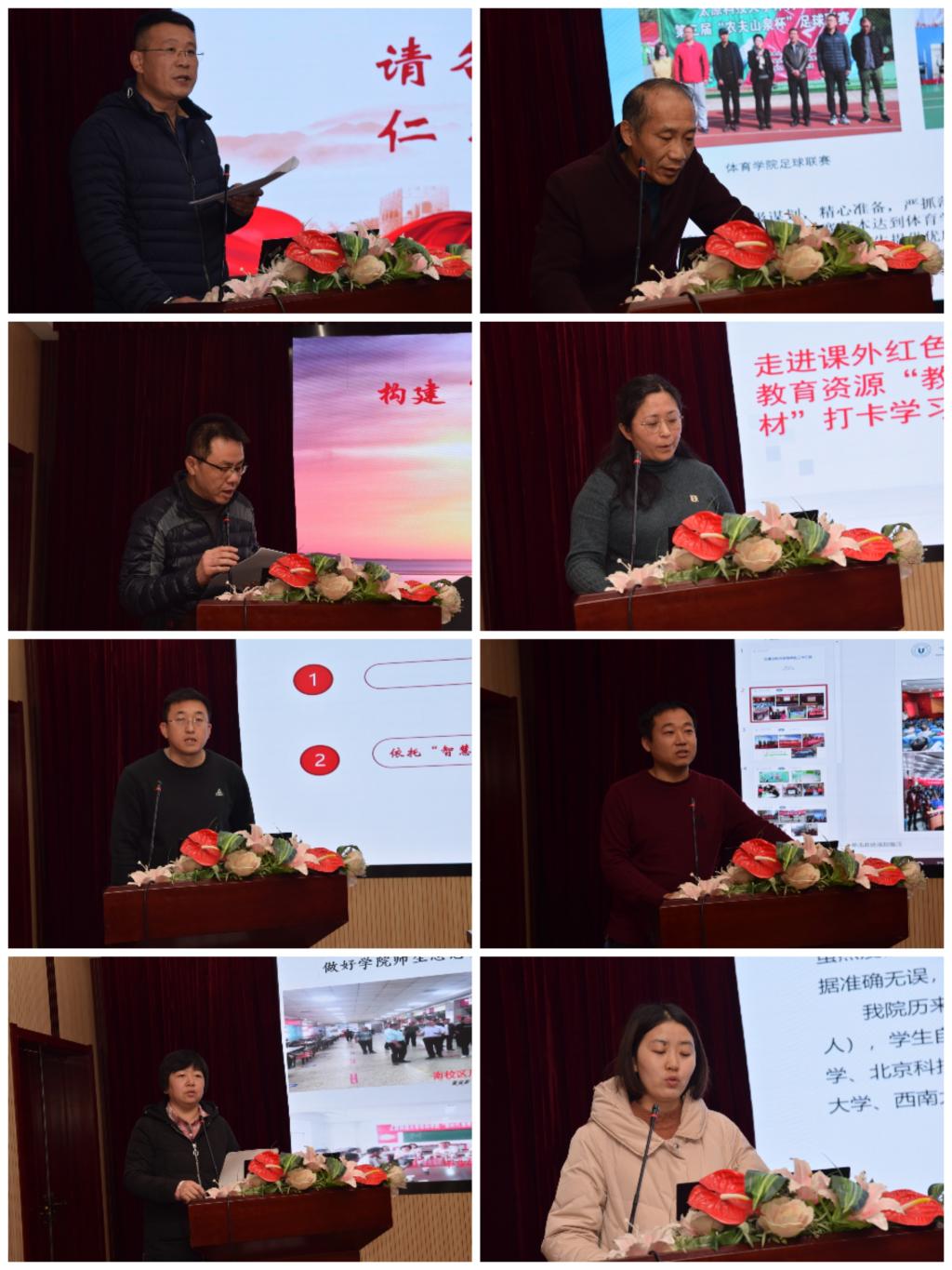 会上,各学院副书记分别就本院一年来在大学生思想政治教育、党团班级建设、学风建设、学生日常事务管理、心理健康教育、危机事件应对、职业规划与就业创业指导、理论和实践研究等方面的工作举措及特色亮点进行了汇报交流。