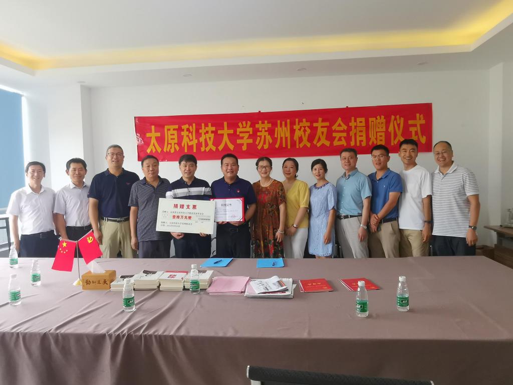 苏州校友对马立峰副校长一行表示热烈的欢迎和衷心的感谢,并为母校近年来的发展及取得的成绩感到由衷的自豪。校友们表达了对母校深深的感恩之情,表达了毕业后对母校的牵挂和关切之心,介绍了企业发展现状和未来发展愿景。表示将继续秉承“负重奋进,笃行求实”的校训精神,一如既往地关心和支持母校的发展,进一步深化校企在实习实践、科技研发、项目申报等方面的合作,竭力为学校事业发展贡献力量,努力在各行各业战线上为祖国的发展强大贡献所能。此次苏州校友捐赠10万元建设校园雕塑,向学校70华诞献礼,以表达对母校培育、关心支持的感恩之情。