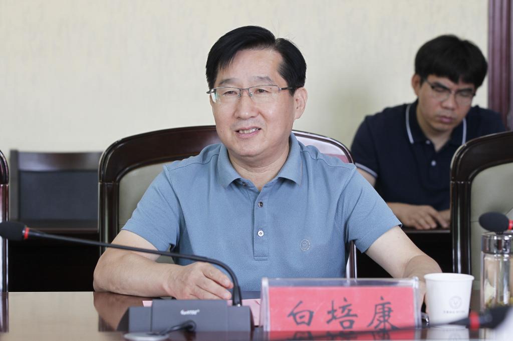 白培康致欢迎辞,他介绍了学校近年来在人才培养、科技创新、办学条件改善等方面的主要成绩,并强调此次校企合作,共建共享科学研究平台,共同开展技术创新和人才培养,有利于校企优势互补,合作共赢,推进产学研合作迈出新步伐。他强调,两家北京校友企业取得的成就令人欣慰,发展愿景令人振奋,尤其在增材制造装备、材料和应用技术方面围绕国家战略需求和技术前沿方面做了大量工作,取得了可喜成绩。希望校企双方进一步深化合作,联合培养人才、共同组建科研团队、携手攻克技术难题,积极进行成果转化,校企携手合作,共赢未来,也诚挚邀请各位校友返校参加70年校庆活动。