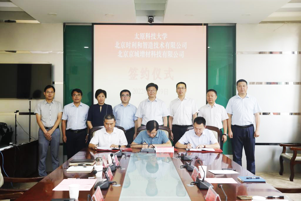 万象城官网积极贯彻落实省委、省政府关于深化省校合作决策部署,以建校七十周年校庆为契机,以校企合作为抓手,积极汇聚各界校友资源,提升学校科技创新和服务能力,助力我省全方位高质量发展和太忻一体化经济区建设。8月19日,学校校友企业——北京时利和智造技术有限公司董事长董海、北京京城增材科技有限公司总经理庞瑞峰带队专程到母校考察调研、洽谈合作,三方共同签署了产学研合作协议,共建增材制造研究院,两家企业联合为学校设立了5000万元校企合作专项科创基金。