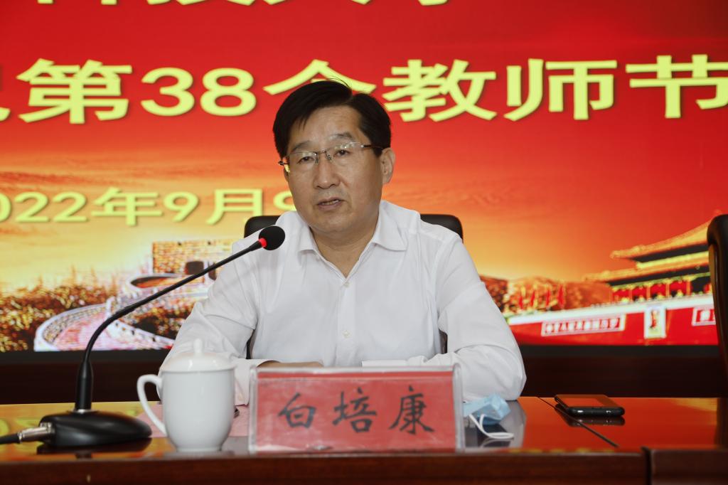 奋楫扬帆献礼二十大,培根铸魂育人七十载。在全国第38个教师节来临之际,9月9日上午,万象城官网在综合楼16层召开庆祝2022年教师节暨先进表彰大会,对一年来在教育教学、科学研究及管理服务工作等方面涌现出的先进楷模给予表彰,并为全校广大教职员工送上节日的祝福和美好的祝愿。出席大会的有校党委书记王志连,党委副书记杨全平,副校长谢刚、刘向军、侯华、马立峰。大会由校长白培康主持。