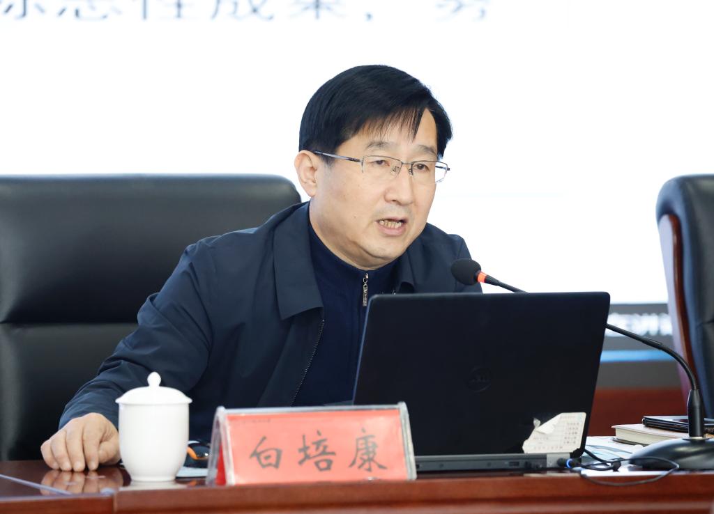 白培康科学分析研判了当前学校发展面临的新形势与新挑战,系统回顾总结了学校2022年所取得的工作成绩。他结合今年学校重点工作,分别就如何深入推进党建思想引领、学科转型升级、人才培养强化、科研能力提升、师资队伍建设、治理机制优化、保障能力提升等七大工程进行了安排部署,并对下一步的工作落实提出要求:一要切实解放思想。要进一步更新观念,大胆创新,对标一流,不断提出新思路、拿出新举措、取得新突破、开创新局面;二要勇于担当作为。面对学校改革发展的重任,各级领导干部要树立强烈的责任感和使命感,要有敢想敢干的精气神,要努力提升管理能力和业务水平,攻坚克难,奋勇争先;三要强化责任落实。学校要进一步树立狠抓落实的鲜明导向,从目标制定、任务分解、过程管理、督查督办、考核奖惩全流程,健全完善狠抓落实的工作机制。
