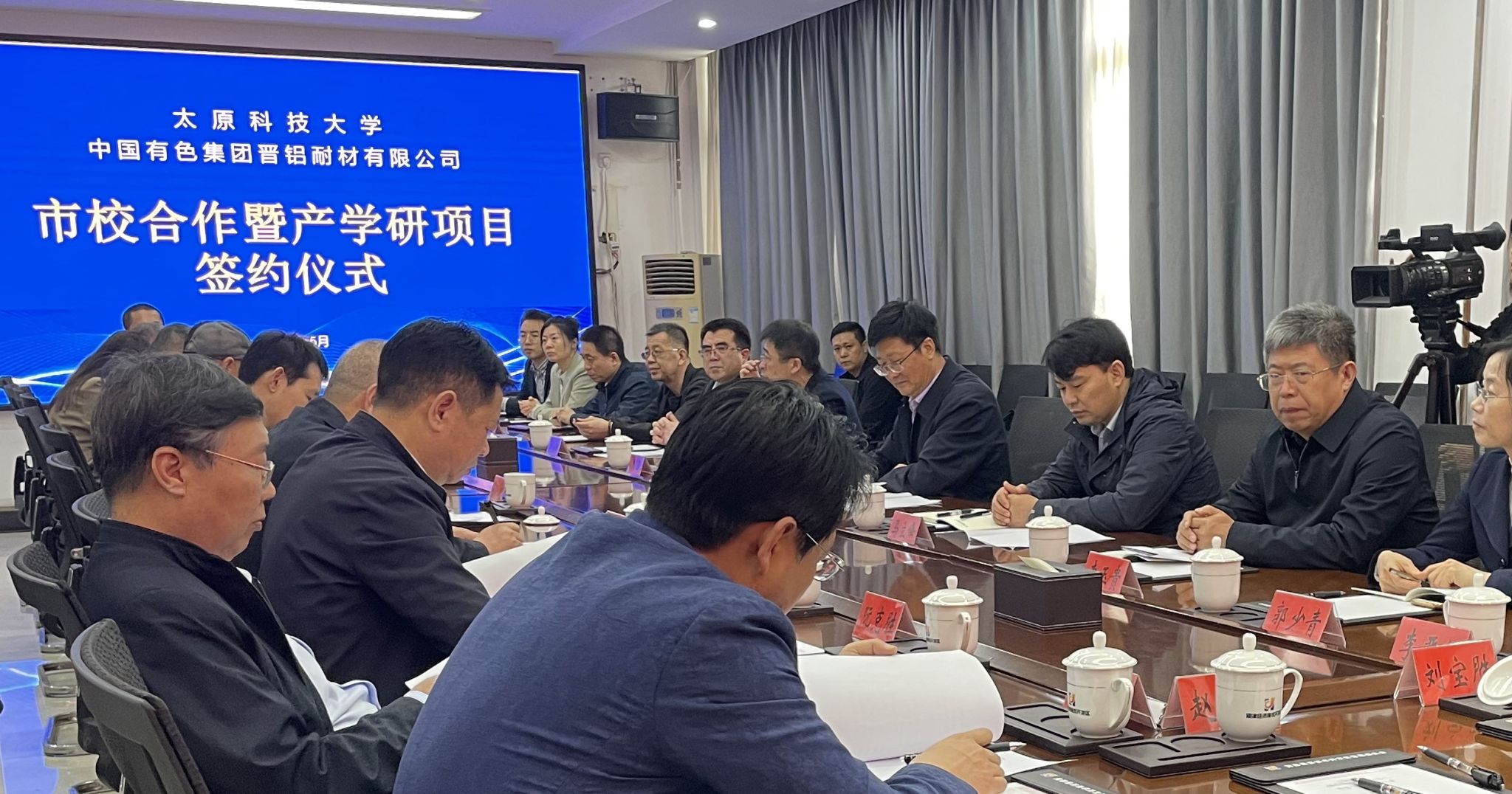 7日上午,王志连一行参加了中国有色集团晋铝耐材有限公司市校合作暨产学研项目签约仪式。河津市委常委、组织部部长高瞻等市委、市政府领导及晋铝耐材有限公司和兴华科技股份有限公司负责人参加会议。副校长马立峰代表学校与企业签署了产学研合作协议。