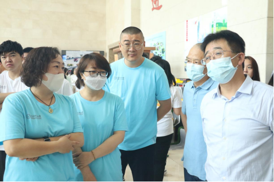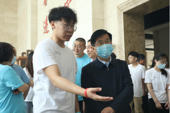 白培康边看边与参展学生进行沟通,了解同学们的设计理念、设计思路以及功能、用途,对毕业生的作品给予充分肯定,指出参展作品能够积极回应社会现实需求,表现形式上实现了从单一到多元、从传承到创新的探索拓展,兼具较高的艺术创造力和产品实用性。