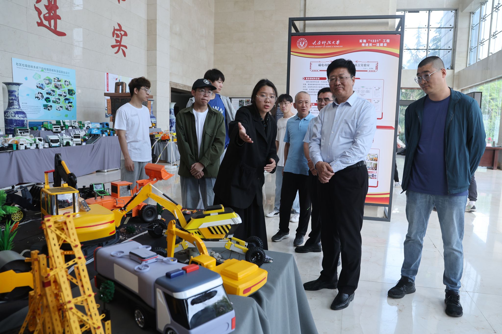 2023年5月30日下午,校党委书记王志连到博学楼一楼大厅参观机械工程学院工业设计专业2019级毕业设计作品展。