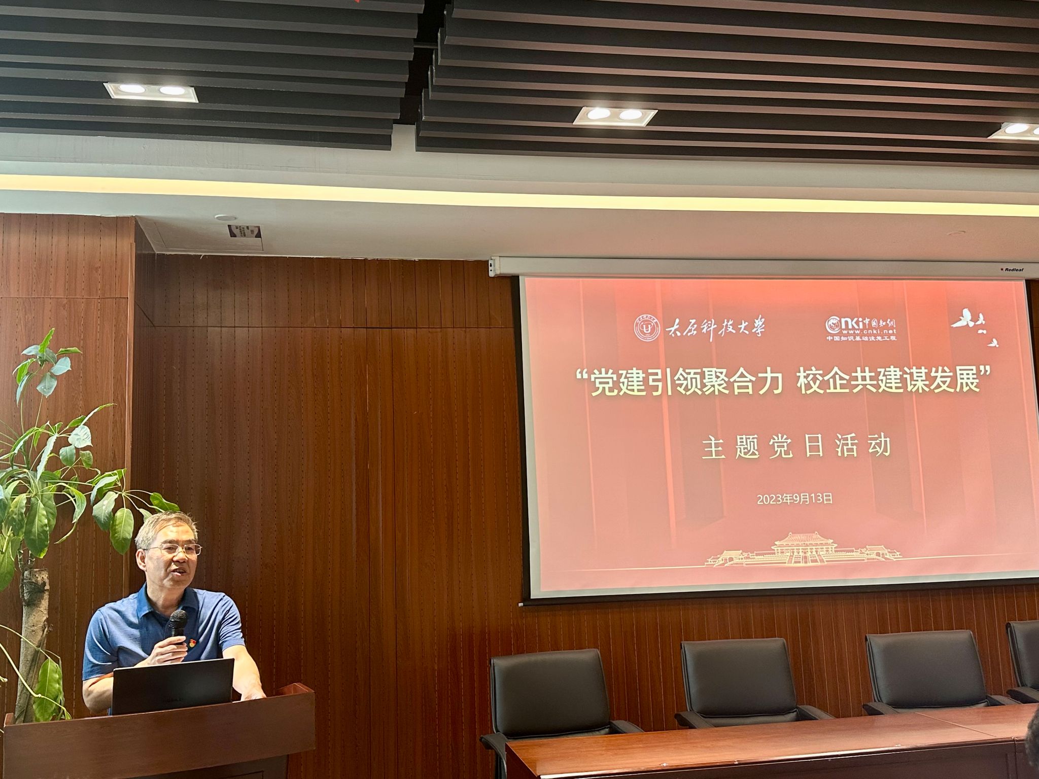 为进一步巩固学习贯彻习近平新时代中国特色社会主义思想主题教育成果,持续深化调查研究,推动主题教育常态化长效化,9月13日下午,教辅党委与山西同方知网联合党支部共同开展“党建引领聚合力,校企共建谋发展”联学共建主题党日活动。教辅党委书记、图书馆馆长辛申伟,产教融合中心主任刘光明,图书馆副馆长黄勇,产品分析测试中心副主任薛永兵,教育信息技术中心副主任王俊,产教融合中心副主任范明亮,及教辅六个支部57人赴山西同方知网产业园进行参观交流。