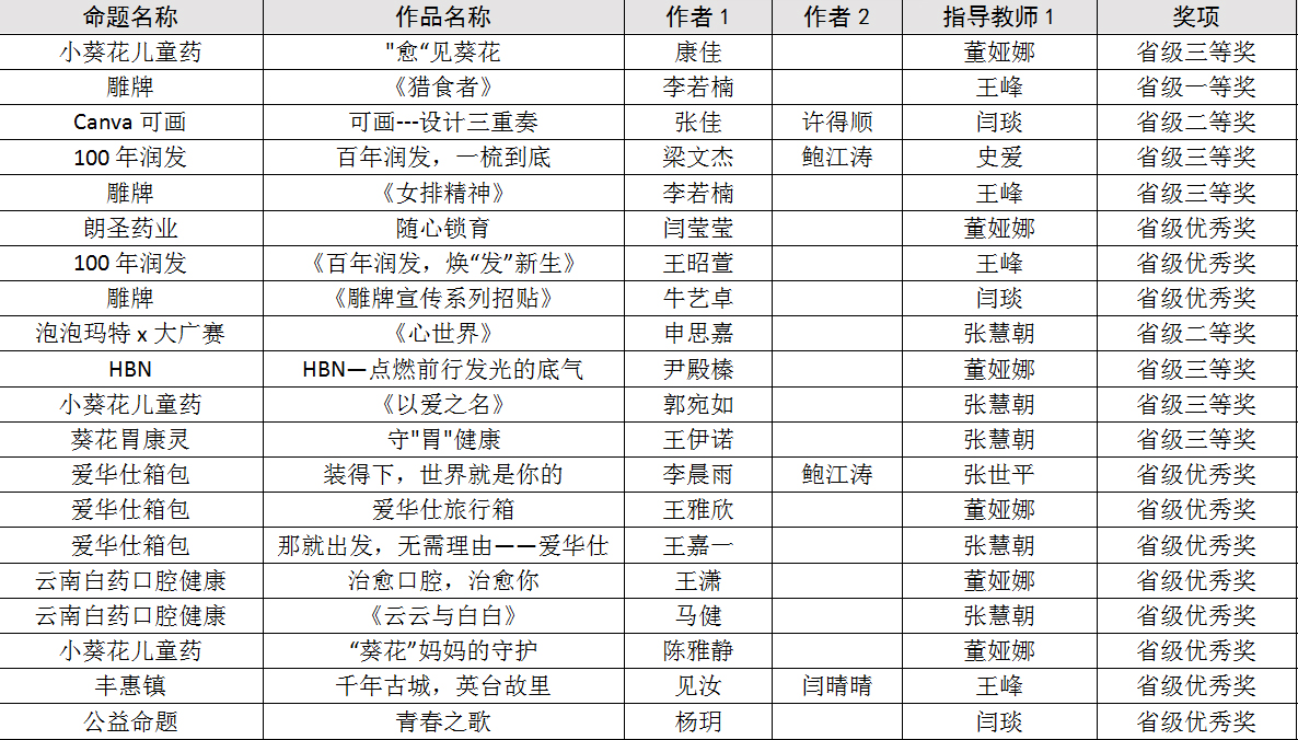 近日,第十五届全国大学生广告艺术大赛(以下简称:大广赛)评选活动圆满落下帷幕。设计与艺术学院140名本硕生提交的参赛作品,经过学院辅导、初评,山西省赛区评选,全国总评审,共2件作品获得全国总决赛奖项,其中二等奖1项,优秀奖1项;共20件作品获山西赛区奖项,其中一等奖1项,二等奖2项,三等奖6项,优秀奖11项。