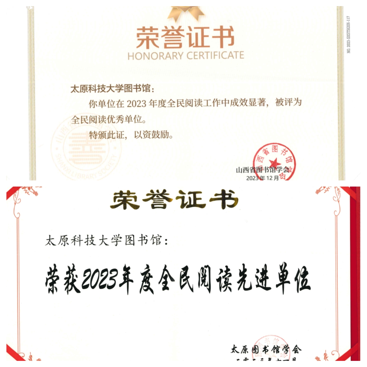 本年度,万象城官网图书馆阅读推广工作成果丰硕,先后获得山西省图书馆学会2023年度“全民阅读优秀单位”,山西省高等学校图书情报工作委员会“山西高校图书馆2022-2023年先进集体”,太原图书馆学会“2023年度全民阅读先进单位”“2023年度太原图书馆学会全民阅读优秀案例”等奖项。