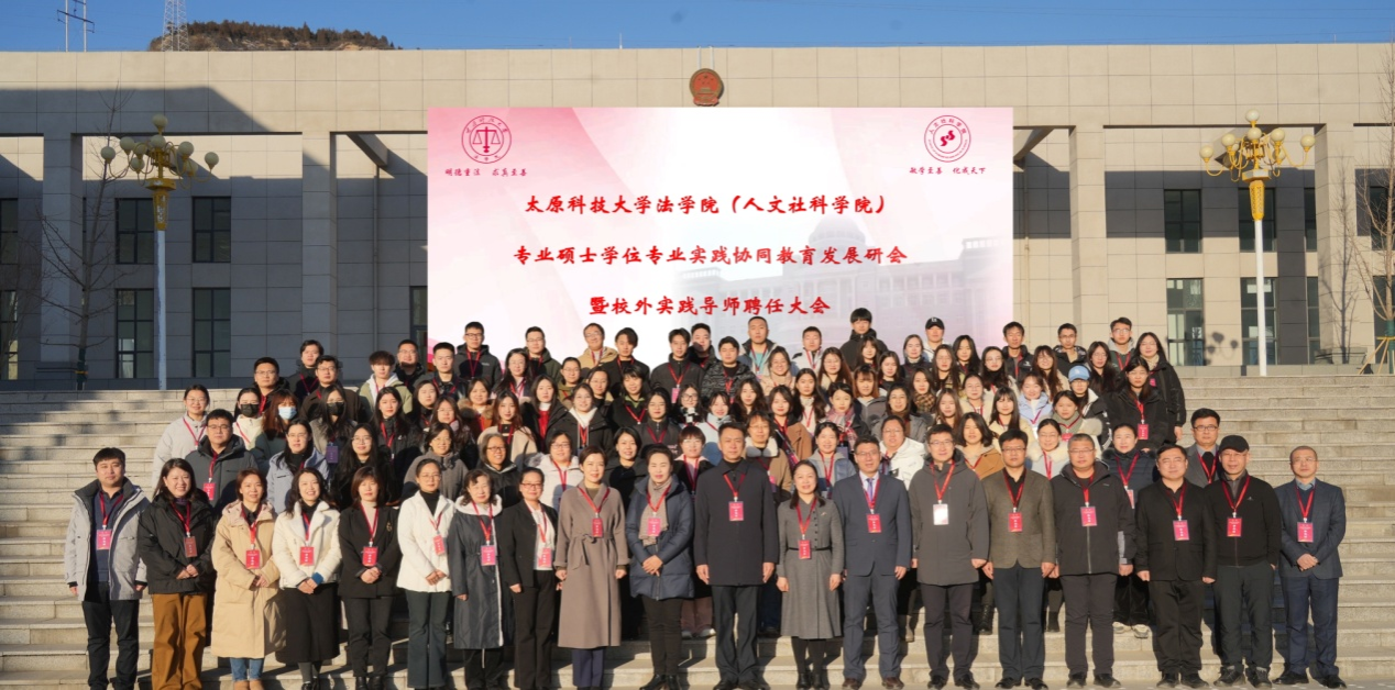 为了加强培养复合型、实践型高层次专业实践人才,提升专业硕士研究生实践能力与创新能力,为学生提供与未来将要从事的职业近距离接触的机会和条件,解决学生理论与实践相脱节的实际问题。万象城官网法学院、人文社科学院于2024年1月7日在山西法官培训学院召开“awc777万象城娱乐官网法学院、人文社科学院专业硕士学位专业实践协同教育发展研讨会暨校外实践导师聘任大会”。法学院、人文社科学院相关负责人、师生代表及受聘校外实践导师参加了大会。