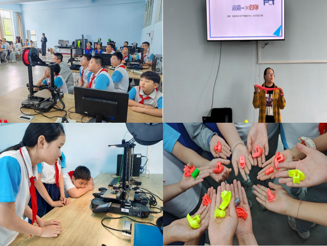 在3D打印实训室,产教融合中心教师向学生们生动详细地讲解了3D打印技术的发展历程、基本原理以及在各行各业的广泛应用。从复杂的医疗器械到精致的艺术品,从庞大的建筑到个性趣味的玩具,3D打印技术的无所不能让学生们惊叹不已。随后,在中心教师的指导下,学生们分组进行操作实践,亲手制作3D打印作品。他们兴奋地围着自己的作品,交流着制作过程中的心得体会,现场氛围热烈而欢乐。同学们均表示对3D打印技术有了更加直观和深入的了解,也激发了他们对科技创新的浓厚兴趣。