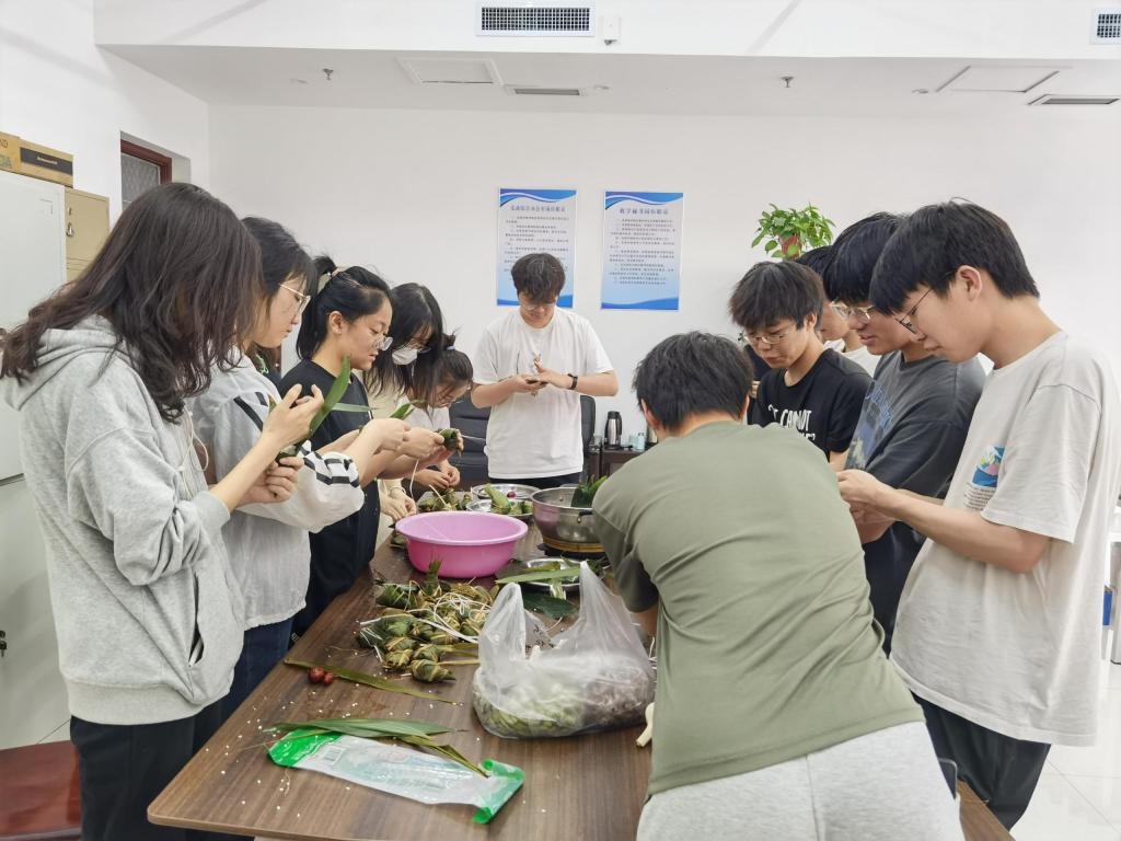 外国语学院师生“卷粽叶、放糯米、加馅料,扎线绳”,大家欢聚在学院办公室互帮互助、全情投入,把满满的快乐和祝福包进粽子,体验中国传统节日特有的韵味,感受端午节丰富的内涵,现场一片欢声笑语,洋溢着浓浓的节日氛围。