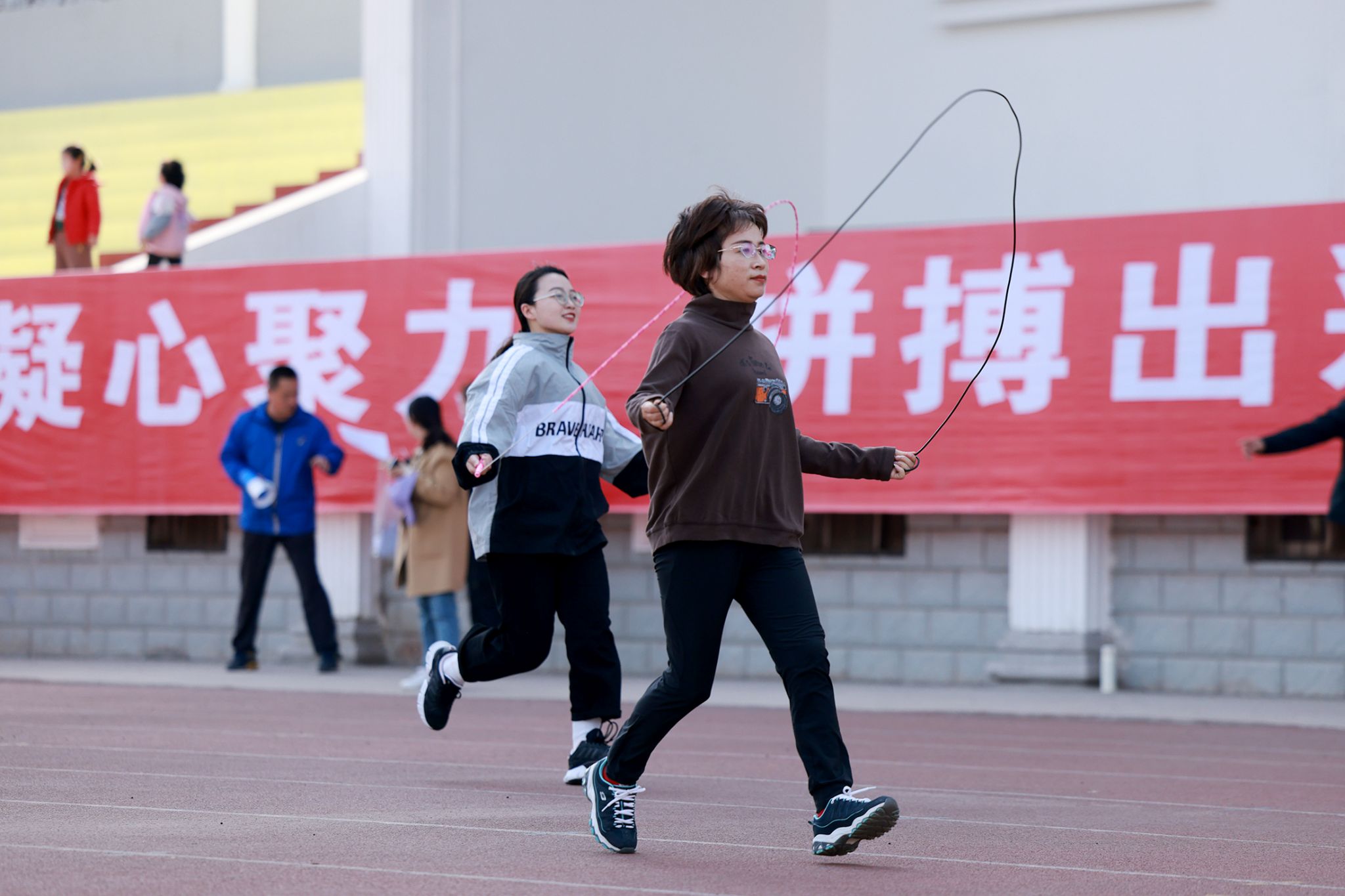 由各基层分工会的组成的14支代表队、140余名教职工参加了以“凝心聚力,拼搏出彩”为主题的趣味跳绳比赛。随着场上裁判的一声哨响,参赛的教职工个个精神抖擞,奋力比拼,一个个跳动的身影、一根根飞舞的彩绳、一张张绽开的笑脸,跳出了自信、跳出了健康。整个比赛过程紧张激烈、扣人心弦,充分展现了万象城官网教职员工拼搏向上、团结奋进的精神风貌。最终,体育学院分工会代表队、后勤基建分工会代表队、机械工程学院分工会代表队、材料科学与工程学院分工会代表队、环境与资源学院分工会代表队、电子信息工程学院分工会代表队等6支代表队分别获得比赛一、二、三等奖。