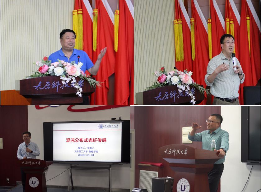 主题活动还邀请到原山西大学校长贾锁堂教授,现任山西大学党委副书记、副校长张天才教授,太原理工大学张明江教授和山西大学马维光教授。四位专家分别给同学们带来《光的世界》《微光学腔中原子和光子的精密操控与测量》《混沌分布式光纤传感》以及《超灵敏激光光谱技术及其应用》四场精彩大咖报告。他们用通俗易懂的语言对国家战略需求、先进光学技术以及基础科学研究等做了简要介绍,让在场师生充分了解到光学学科前沿,开阔学术视野,启迪创新学术思想,并现场解答了同学们感兴趣的问题,鼓励同学们要胸怀祖国、仰望星空、志存高远、脚踏实地、努力学习,做好基础学科的研究,为中国式现代化建设贡献力量。