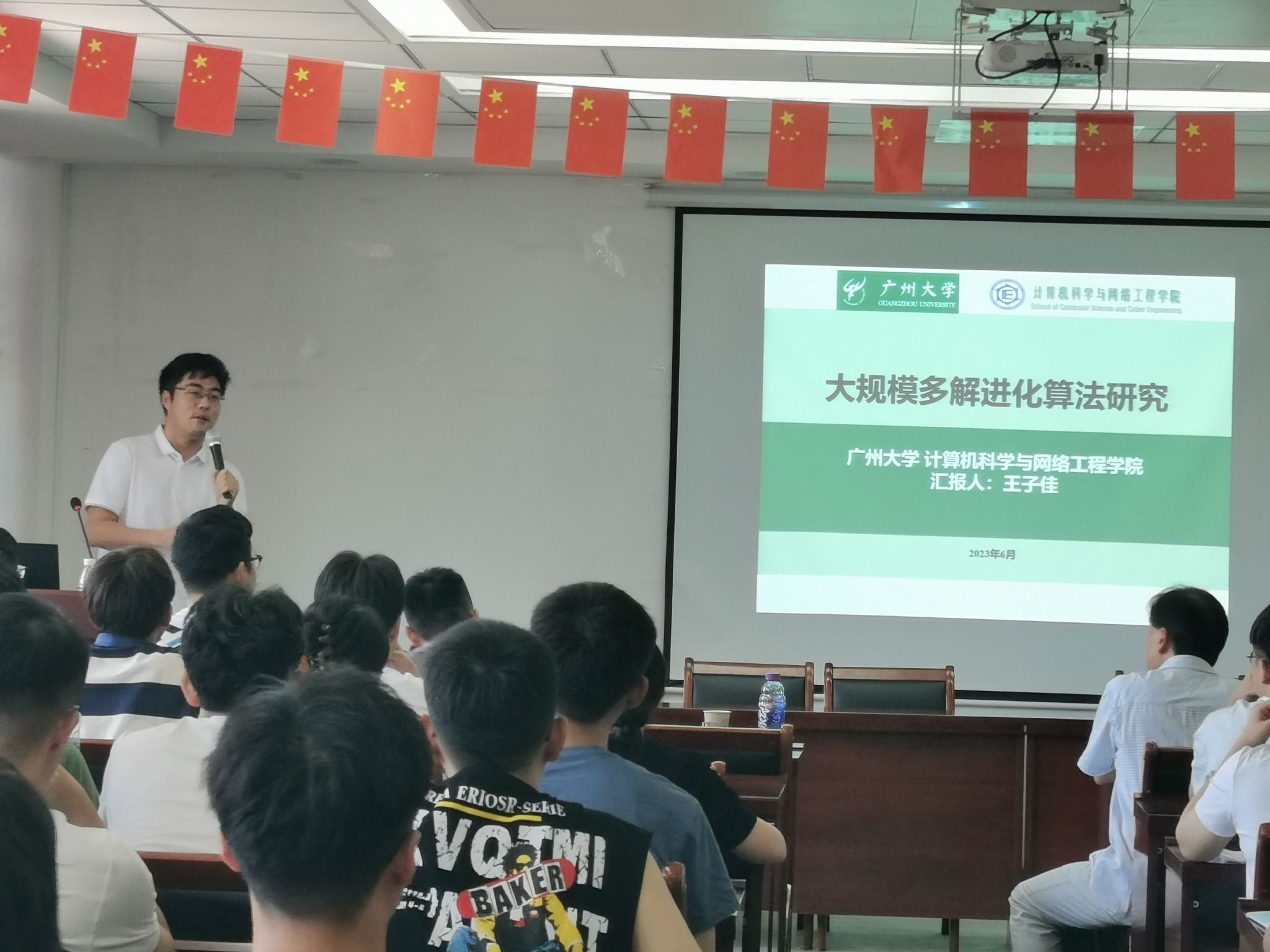 2023年7月24日,应计算机科学与技术学院邀请,德国比勒菲尔德大学工程学院金耀初教授、广州大学计算机科学与网络工程学院王子佳博士分别做了题为《Multi-objective Evolutionary Neural Architecture Search: Communication Efficiency, Privacy Preservation, and Adversarial Robustness》、《大规模多解进化算法研究》的学术报告。报告由计算机科学与技术学院副院长孙超利教授主持,80余名师生参加并认真听取了本次学术报告。