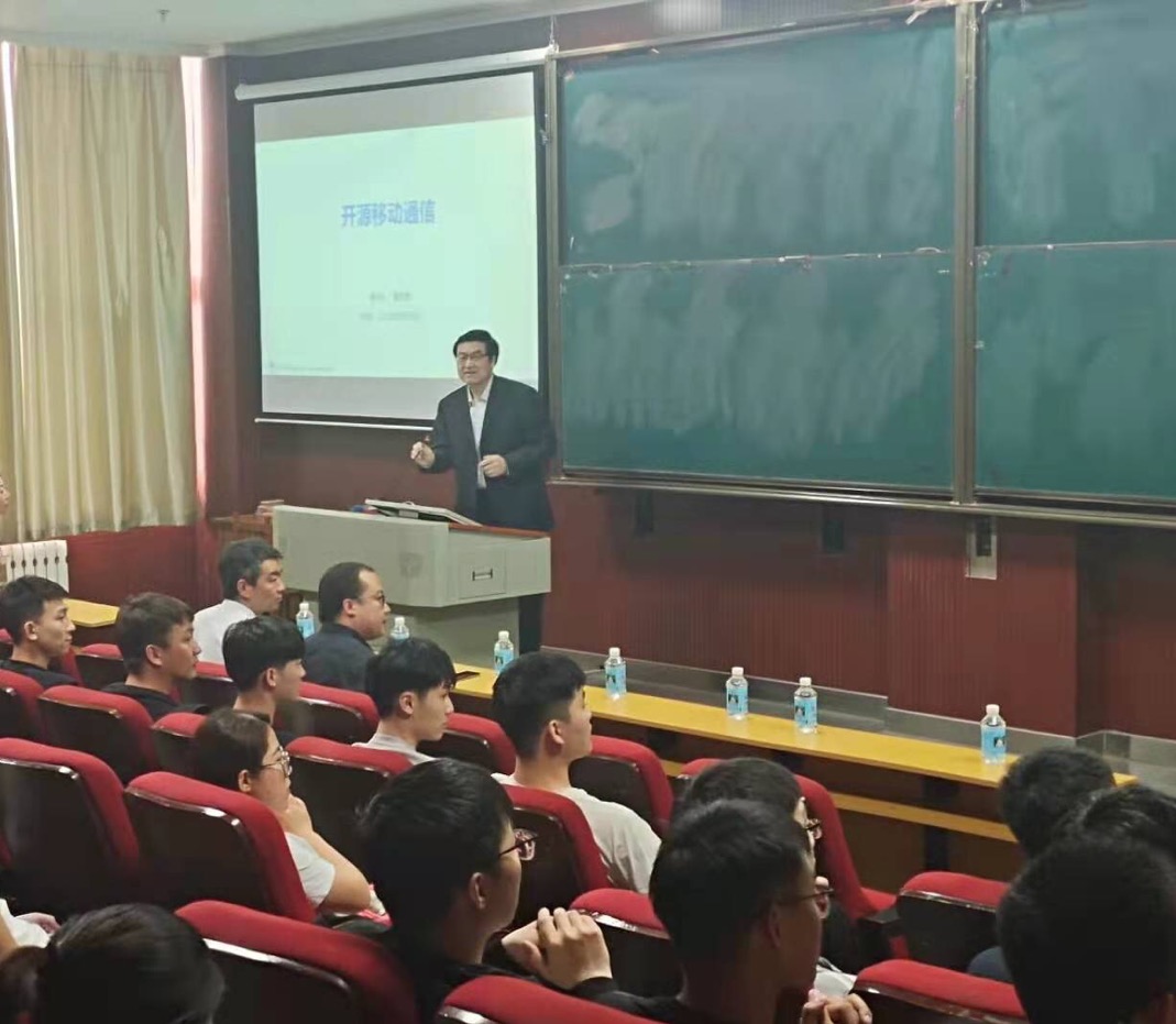 2021年5月26日,北京邮电大学原副校长温向明教授携团队成员一行5人来万象城官网进行交流,并在综合楼九阶做了题为“开源移动通信”的学术报告。awc777万象城娱乐官网谢刚副校长、电子信息工程学院赵志诚院长会见,就北京邮电大学和awc777万象城娱乐官网未来合作空间、合作模式以及合作内容等方面进行了探讨。谢刚副校长主持了学术报告会,来自本校和外校的70余名教师及研究生聆听了此次报告。