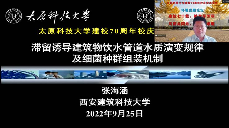 西安建筑科技大学环境与市政工程学院张海涵教授做了题为《滞留诱导建筑物饮水管道水质演变规律及细菌种群组装机制》的报告,以室内饮用水管道滞留水体为研究对象,探究了过夜滞留对饮用水水质的影响,解析了滞留水体中细菌数量、活性和种群结构的季相演替规律,揭示了饮用水微生物生态对外源藻类有机物污染的响应机制。