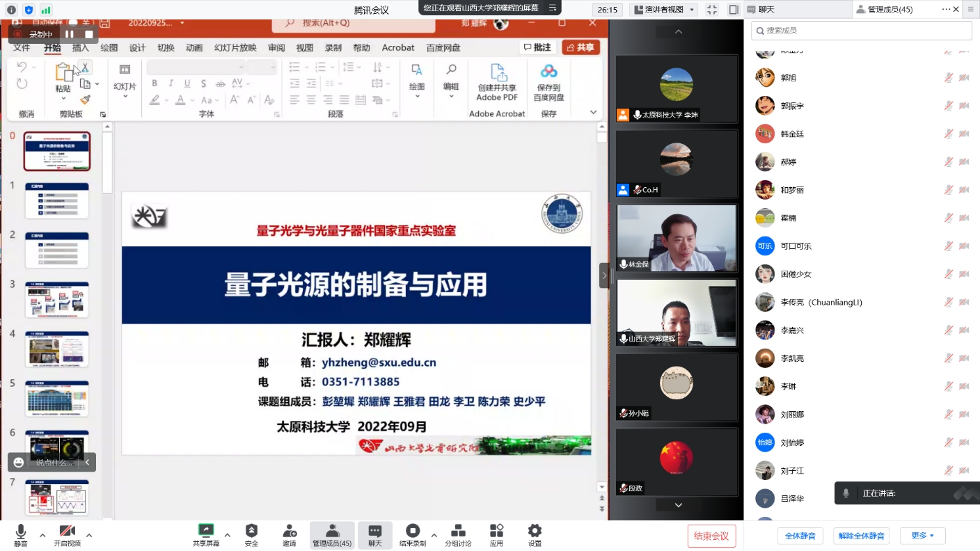 2022年9月29日,应万象城官网应用科学学院和科学技术研究院邀请,山西大学国家杰出青年基金获得者郑耀辉教授在线上作了题为《量子光源的制备与应用》的学术报告。报告由应用科学学院院长林金保教授主持,万象城官网百余名师生倾听了郑教授的学术报告。