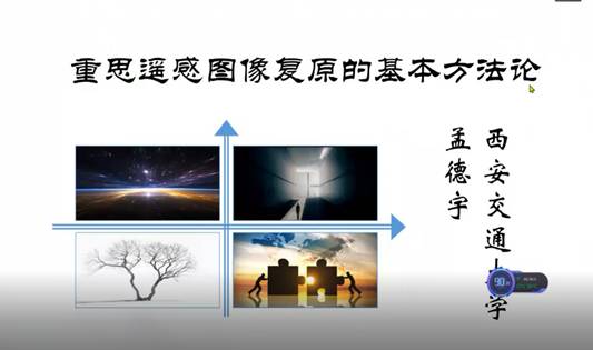西安交通大学孟德宇教授做了《重思图像复原的基本方法论》的报告,报告针对遥感图像的特殊内涵,尝试对已有底层图像技术进行内在功能的分析,从而反思其局限性,进而讨论如何对图像复原问题能够更加合理设计方法论的可能策略。