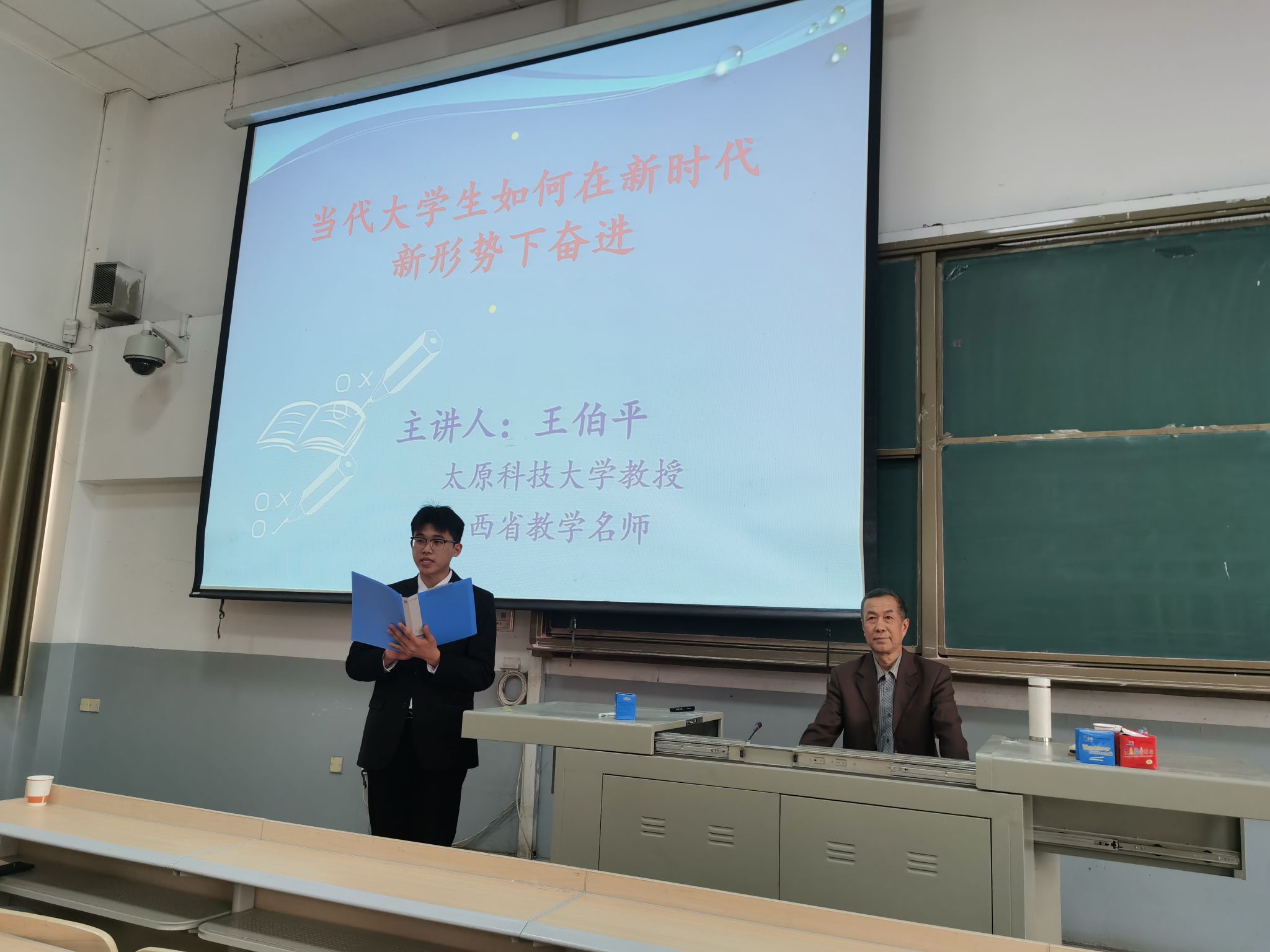 万象城官网退休教师王伯平教授作了题为《奋进新征程建功新时代---青年大学生如何担大任履使命》的讲座。结合自身和身边优秀分子的成长和发展的典型事例,用生动的故事、鲜活的案例,勉励广大青年人“培育正三观”,“积累正能量”,要心怀爱国之情,笃行报国之志,学好理论知识,夯实专业基础,拓展多种技能,既要做好从基层起步的准备,又要勇于把握机会奋进拼搏,担当起新时代青年的历史使命。