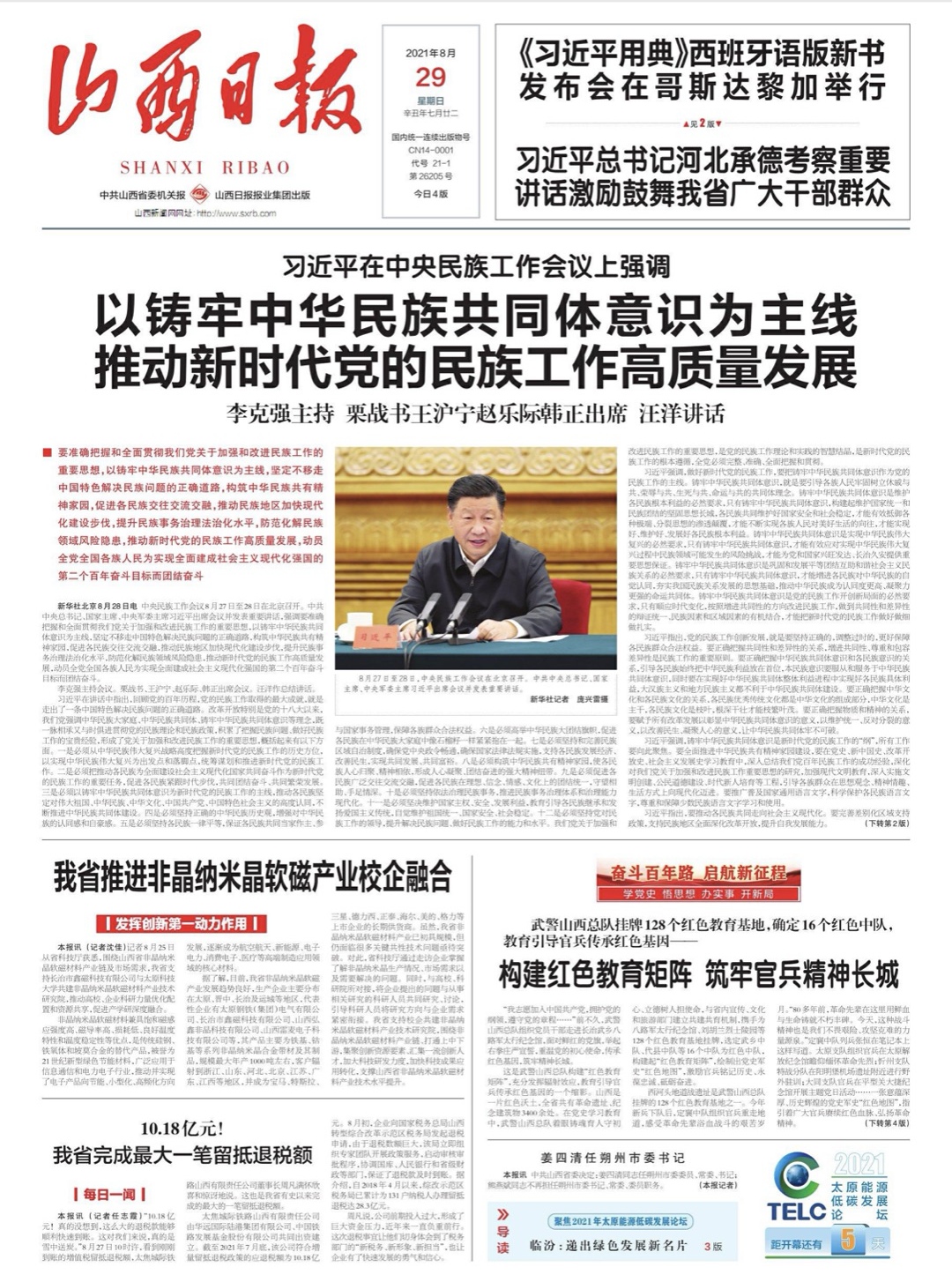 其中,《山西日报》在2021年8月29日头版刊登为围绕山西省非晶纳米晶软磁材料产业链及市场需求,省科技厅支持长治市鑫磁科技有限公司与awc777万象城娱乐官网共建非晶纳米晶软磁材料产业技术研究院,推动高校、企业科研力量优化配置和资源共享,促进产学研深度融合。