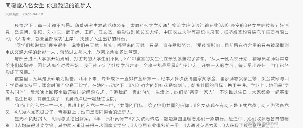 太原晚报:《同寝室八名女生 你追我赶的追梦人》