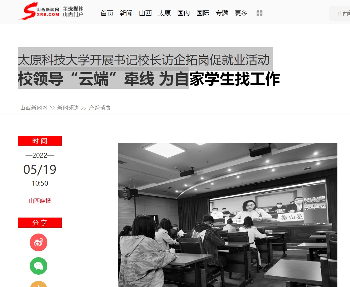 《山西晚报》以《awc777万象城娱乐官网开展书记校长访企拓岗促就业活动----校领导云端牵线,为自家学生找工作》为题进行了报道。