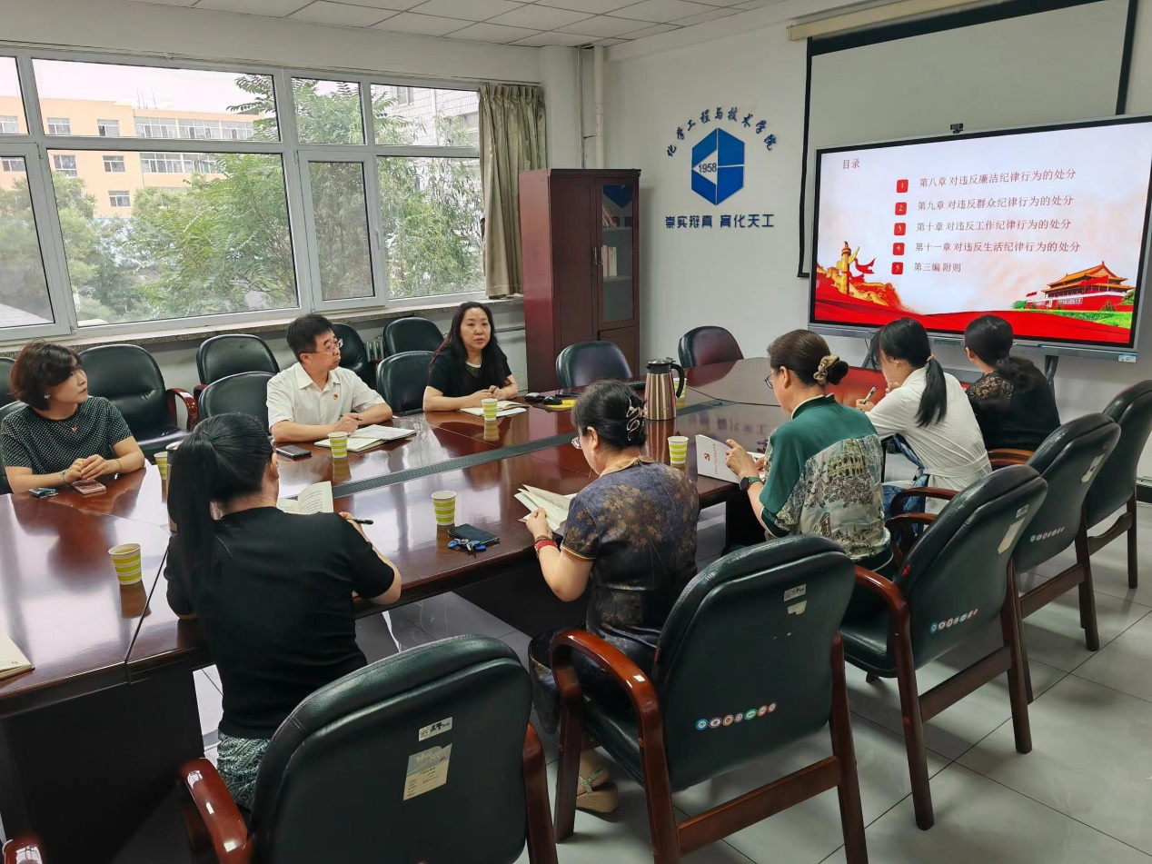 6月21日,校党委常委、副校长侯华深入化学工程与技术学院大学生创新创业指导教师党支部开展党纪学习教育督导工作,会议由党支部书记赵玉英主持。