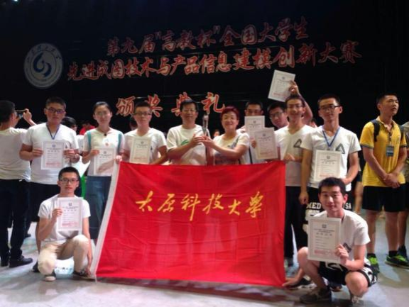 图注:薛爱文老师与同学们在制图大赛上的获奖合影