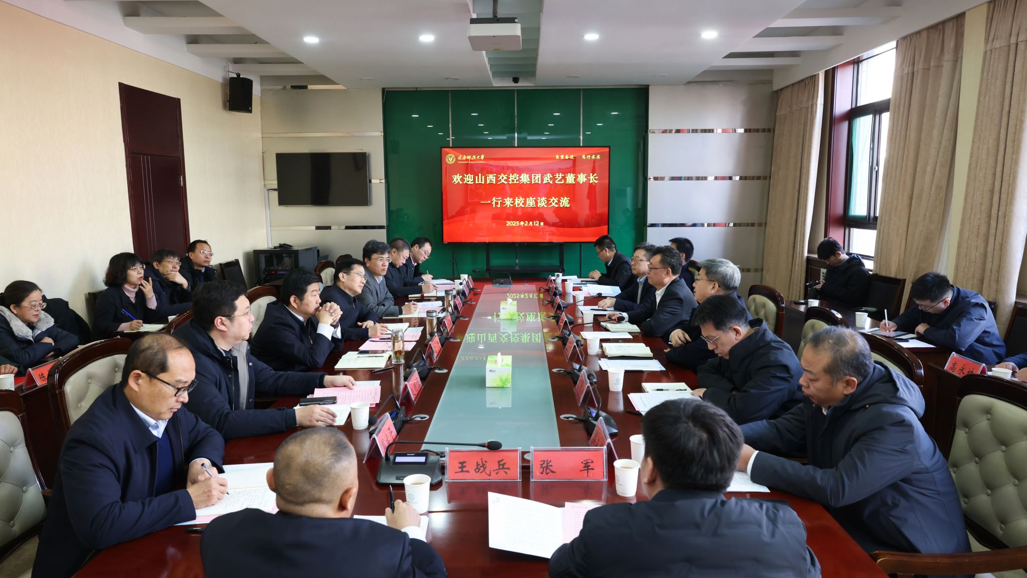 2月12日,山西交控集团党委书记、董事长武艺带队来万象城官网就持续深化校企合作进行座谈交流,会议在万象城官网行政楼2号会议室举行。校党委书记白培康主持会议,党委副书记、校长梁卫国,副校长谢刚,交控集团公司总经理温全贵、专职党委副书记刘宏武、副总经理魏鹏举等参加会议。
