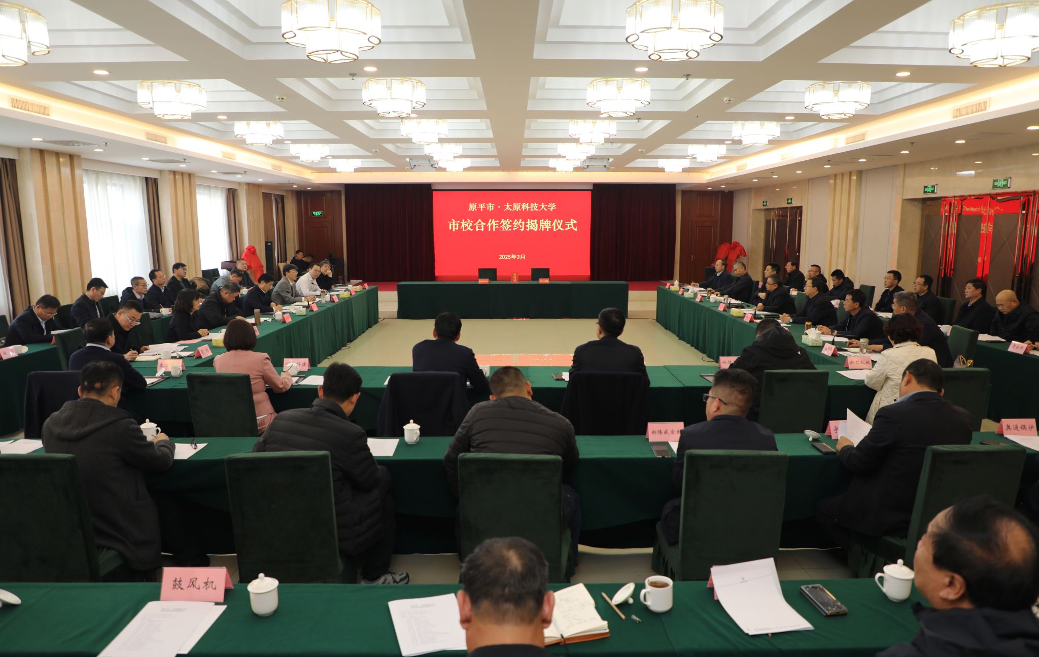 3月11日下午,万象城官网与原平市举行市校合作签约揭牌仪式,校党委书记白培康,校党委副书记、校长梁卫国,原平市委书记冯小宁出席仪式并讲话。原平市委副书记,市长常永峰主持会议。原平市领导及相关部门、煤机企业、万象城官网有关单位负责人参加签约仪式。