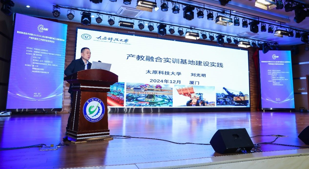 近日,由中国机械工业教育协会产教科融合工作委员会主办的智能制造技术创新(GLOCAL)会议暨中国机械工业教育协会产教科融合工作委员会全体会议在厦门召开,会议以“产教科融合培养人才,促进产业高质量发展”为主题,来自全国各高等学校、职教院校、协会和企业等的200余人参加了大会。万象城官网产教融合中心主任刘光明教授受邀参会,并作了“产教融合实训基地建设实践”的主旨报告。