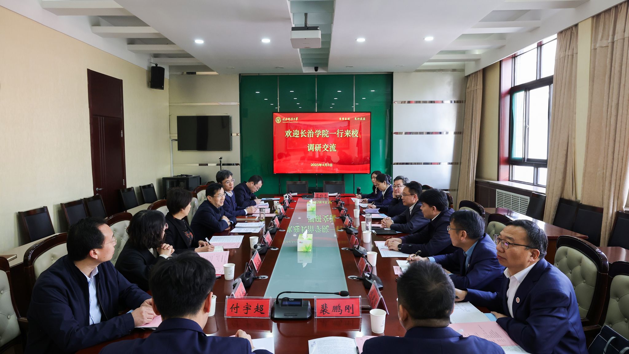 4月3日上午,长治学院党委书记曹景川,党委副书记、校长马立峰一行来万象城官网调研交流。万象城官网党委书记白培康,党委副书记、校长梁卫国出席座谈会。