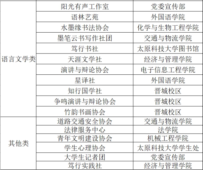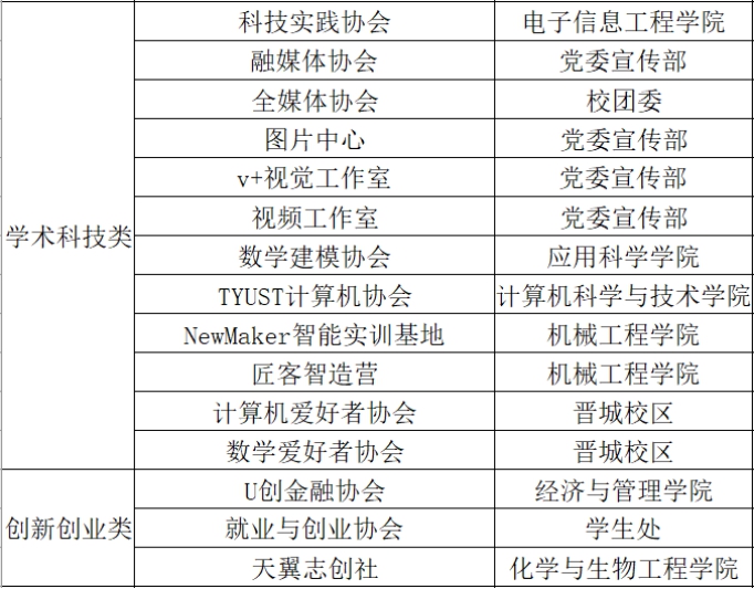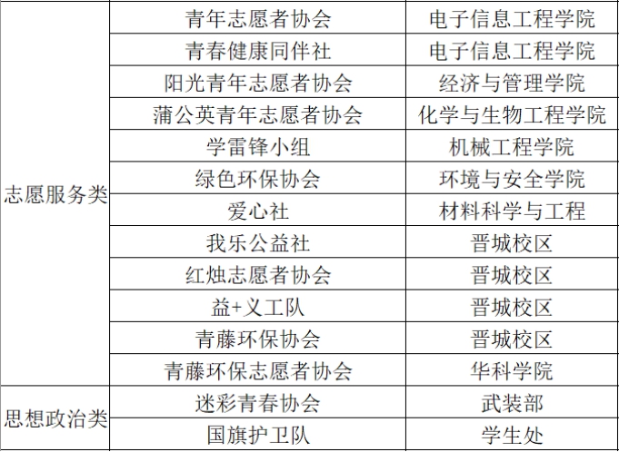 以下是2022年度社团联合会管理下的所有社团: