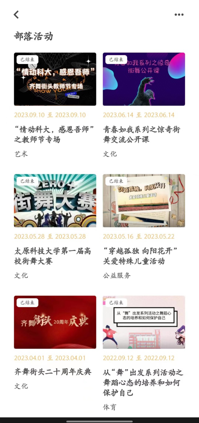 齐舞街头在到梦空间一共发布七场活动,2022-2023学年第一学期发布两个活动,2022-2023学年第二学期4月发布一个活动。我们积极响应学校建设第二课堂,到梦空间的号召。秉持着应发尽发的宗旨,既希望为同学们提供高质量的活动,又希望为学校的文艺活动氛围奉献属于自己的力量。